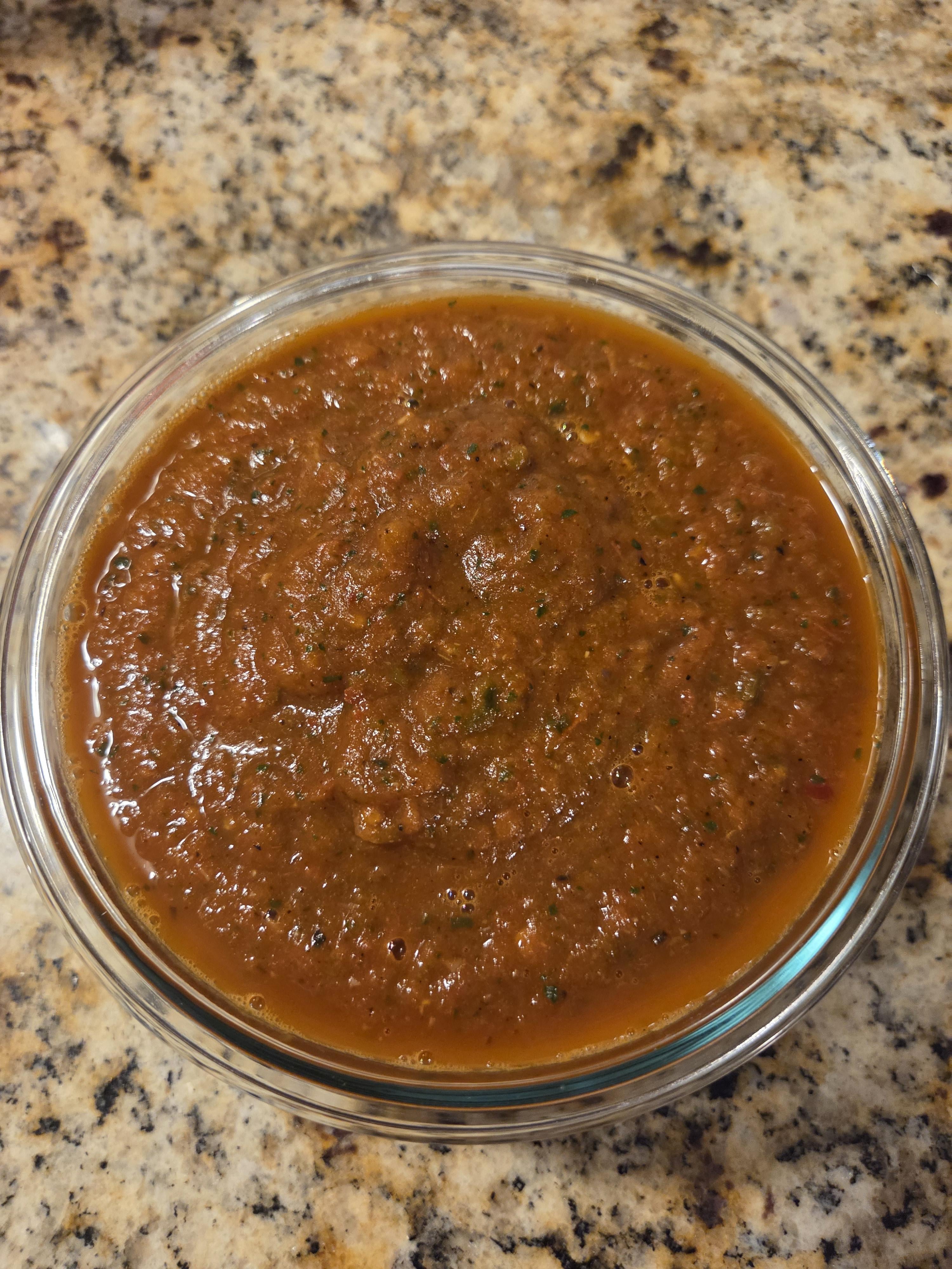 Blended all. Added handful of cilantro. Tbsp of salt. Half-ish cup of the water from rehydrated guajillo's. Juice of 1/2 lime.