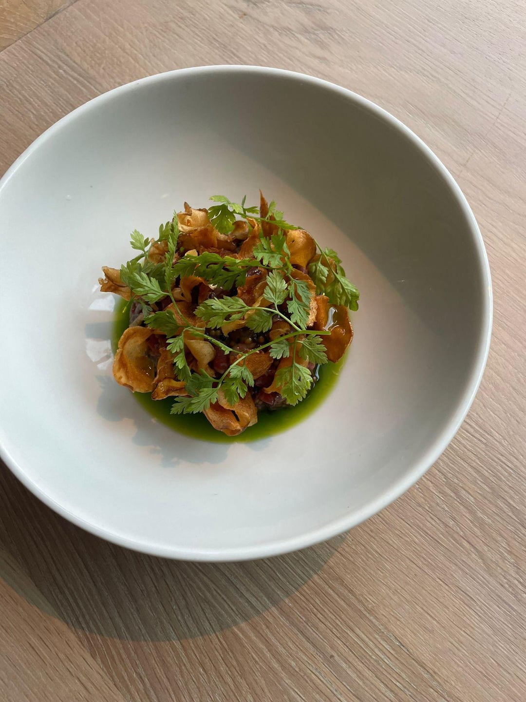 12. ⁠Beef Tatare | Fried Eggyolk | Topinambur | Chervil
