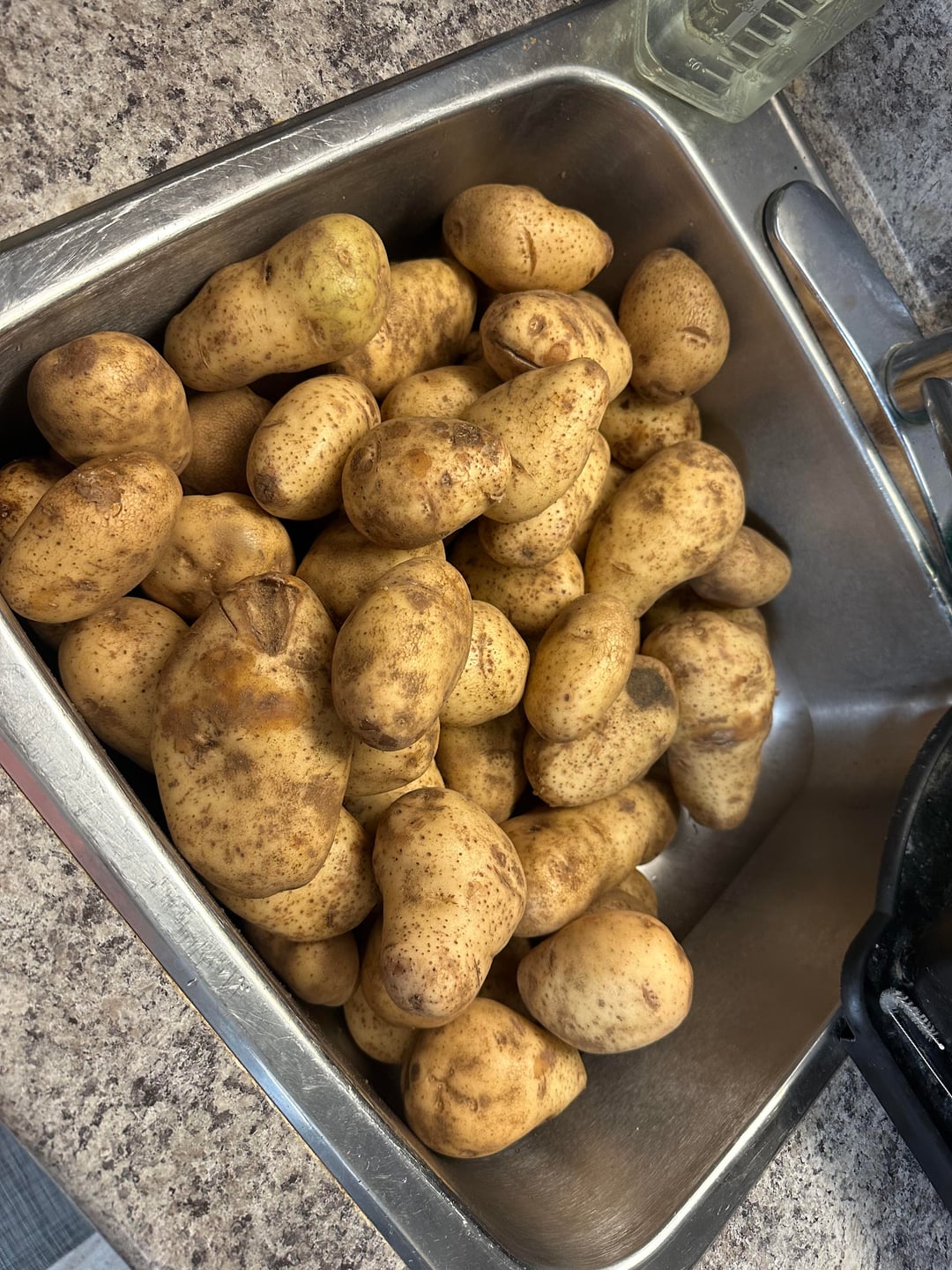 Our local grocer ordered too many potatoes so 10lb bags of russets were 99 cents! So I bought 3 bags and spent my evening prepping for the freezer.
