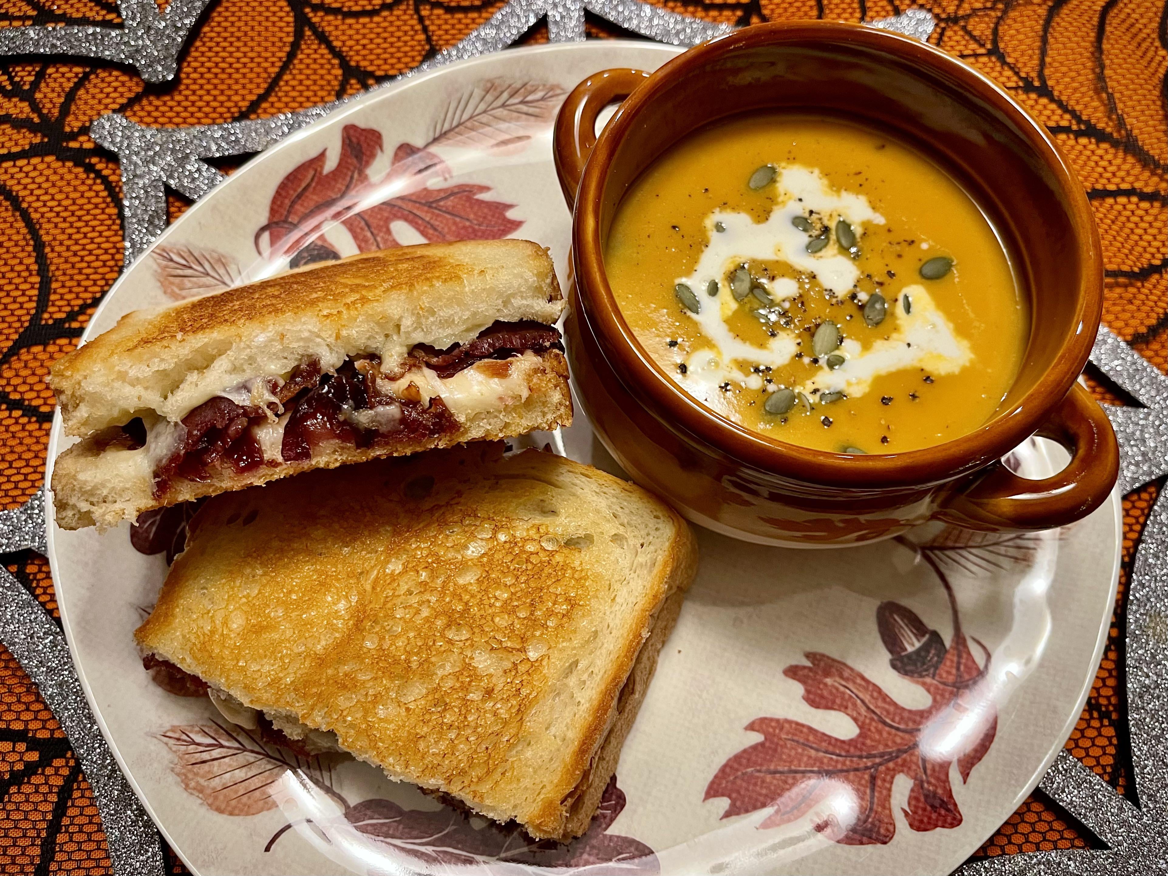 Grilled Gruyere with bacon and braised balsamic onions served with roasted pumpkin soupby Captain_Wisconsin 2 Comments sstubbl1 3 days ago Recipe? PoodleFan4242 3 days ago That looks so good especially the bruised balsamic onions. 🥰❤️