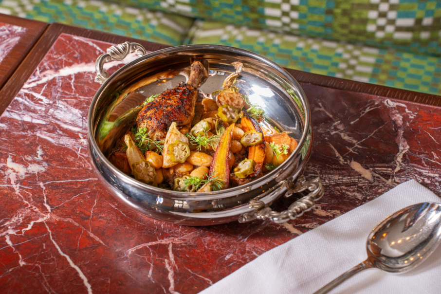 As is his totem, Gourdet’s food is refracted through his personal appreciation for world history. At Maison Passerelle, Gourdet offers his interpretation of French cuisine without excluding the culinary contributions of formerly French colonized lands — North and West Africa, Vietnam, the island countries in the West Indies (like Gourdet’s ancestral homeland of Haiti), and others. While it’d be much easier for some to shy away from such harrowing realities, Gourdet sees a chance to be vulnerable as he guides us in mindfully connecting the dots with flavors, ingredients, and techniques that have long been overlooked in fine dining. For him, that may show up in his version of efo riro, the luscious West African spinach stew, which Gourdet makes with cured duck confit; or hitting a smoked beet and frisee salad with a Vietnamese-inspired vinaigrette made of lemongrass, fish sauce, and bird chile.