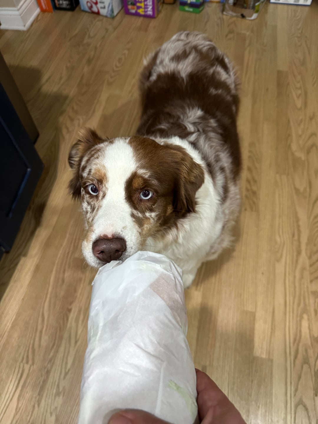 I want to pet your dog! And that sandwich looks great.