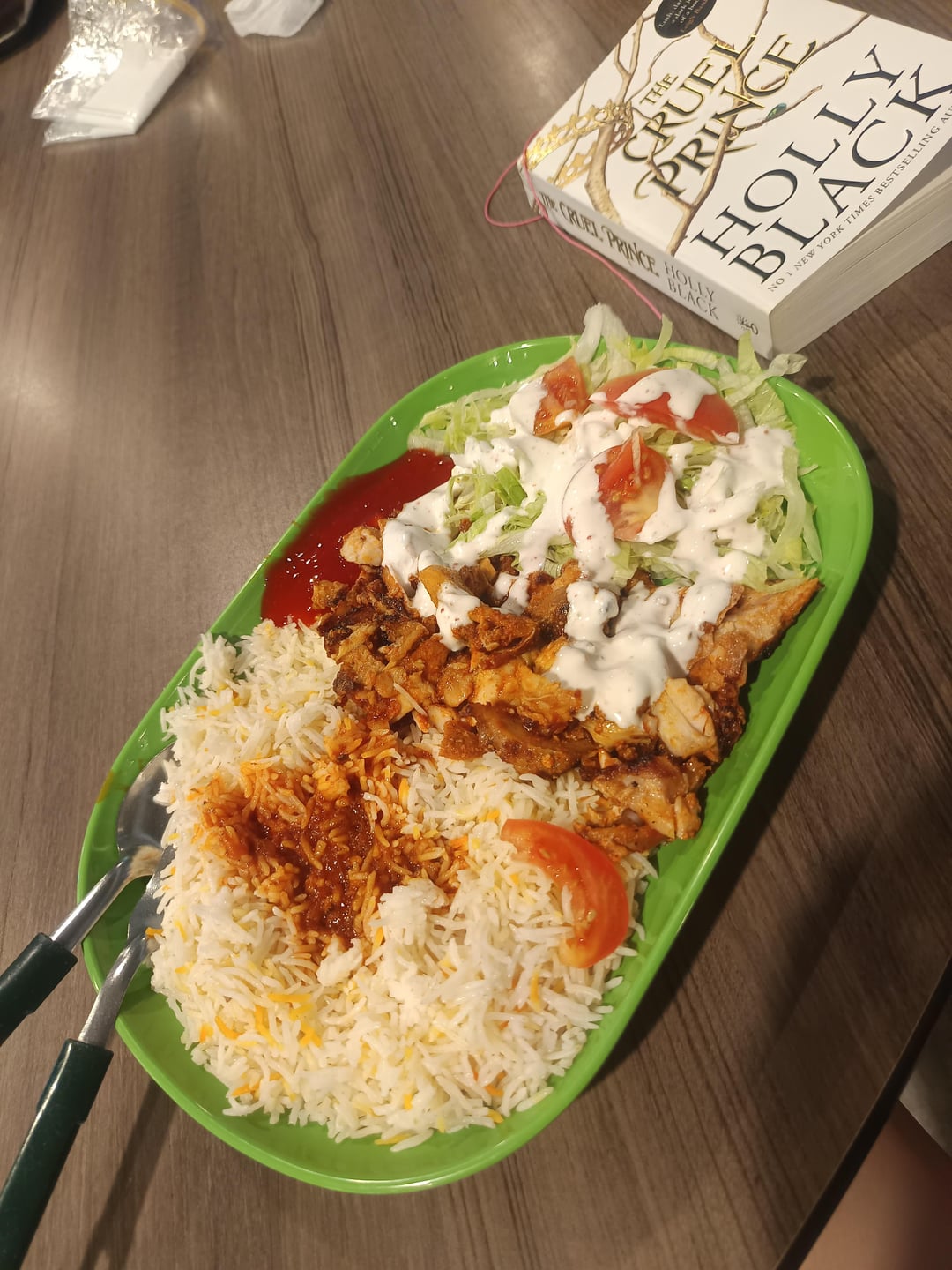 it's chili sauce with some white sauce that tastes like something between yoghurt and mayonnaise. The plate is pretty shallow but big. How much for all this?