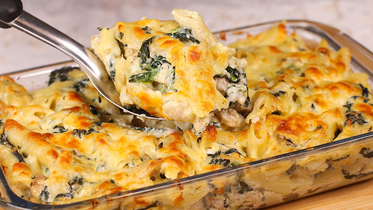 Spinach recipe like a chef! Boneless skinless chicken thighs โ€” 2 pieces. I think this version of the recipe has the most intense flavor. The right way to cut the chicken will make it juicy and tender! Salt to taste. Black pepper to taste. Olive oil โ€” 2 tablespoons. Sear the chicken for 2 minutes. Flip the chicken and sear for another 2 minutes. Garlic โ€” 1 clove. Sautรฉ the garlic for 30 seconds. Spinach (fresh or thawed and squeezed) โ€” 2.5โ€“3 oz (70โ€“80 g). Salt โ€” 1 teaspoon. Pasta (elbow macaroni or penne) โ€” 9 oz (250 g). Cook the pasta until al dente. Cheddar cheese โ€” 6 oz (150โ€“170 g). Set aside one third of the cheese for topping. Unsalted butter โ€” 2 tbsp (30 g). All-purpose flour โ€” 1ยฝ tbsp. Always add the flour to melted butter! Stir with a silicone spatula and cook the butter and flour for a couple of minutes. Milk โ€” 1 cup (250 ml). Heavy cream (20โ€“30%) โ€” 2/3 cup (150 ml). Add salt and freshly ground black pepper to taste Cheddar cheese. Grana Padano or Parmesan โ€” 1 oz (20โ€“30 g), for flavor and aroma. Optionally, add 0.7โ€“1 oz (20โ€“30 g) of mozzarella for extra stretchiness, if desired. Drain the pasta and add one tablespoon of butter. Baking dish 10 ร— 6 inch (26 ร— 16 cm). Grease the mold with butter. Sprinkle the remaining cheddar cheese on top. Bake at 350 ยฐF (180 ยฐC) for 20 minutes. Then increase the temperature to 400 ยฐF (200 ยฐC) and bake for another 5 minutes, until the cheese is golden and bubbly. If you enjoyed this recipe, make sure to like the video and share it with your friends!
