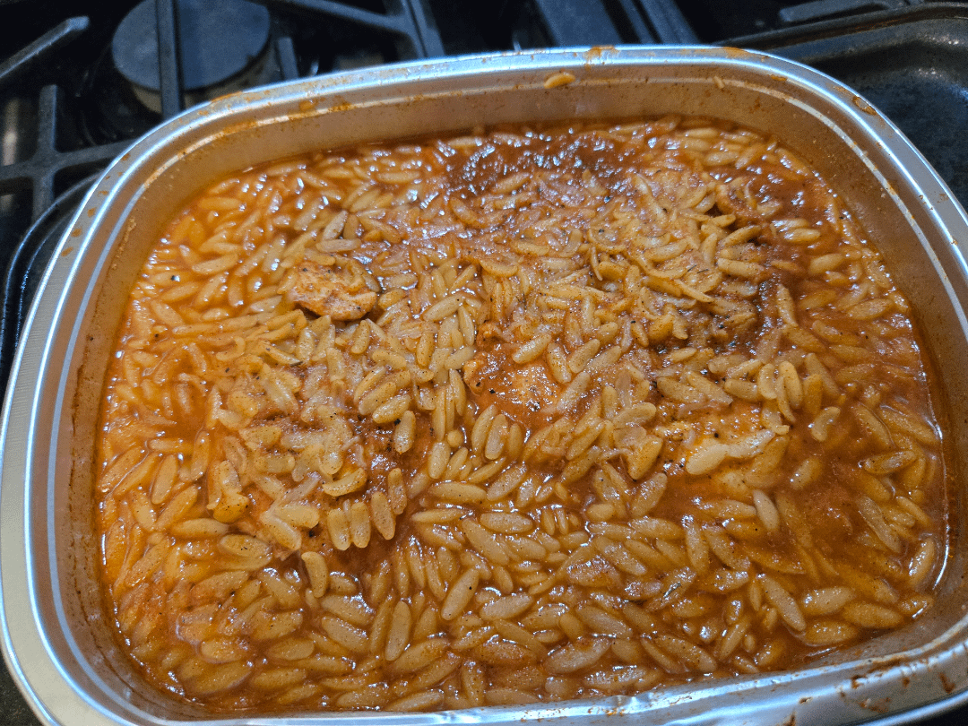 I had the same issue, orzo was mushy and too wet, chicken was barely cooked and all the seasoning washed off! Whole thing went into the bin lol probably my last “prep & bake” for a while.