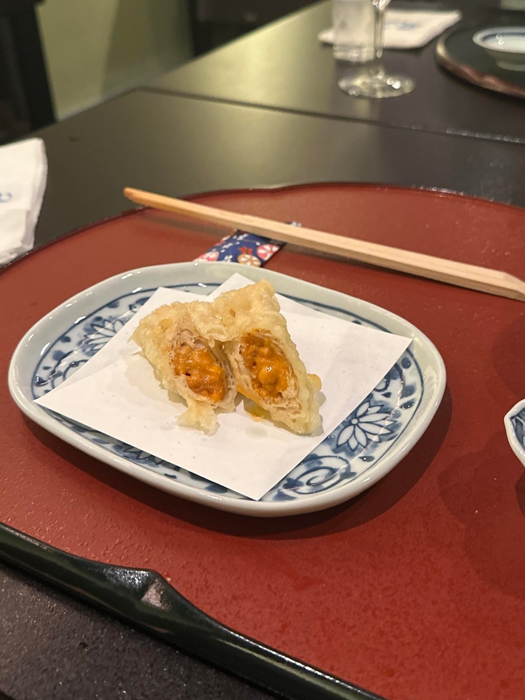 – The blue shrimp, uni in yuba, anago and tendon were good (sorbet too)