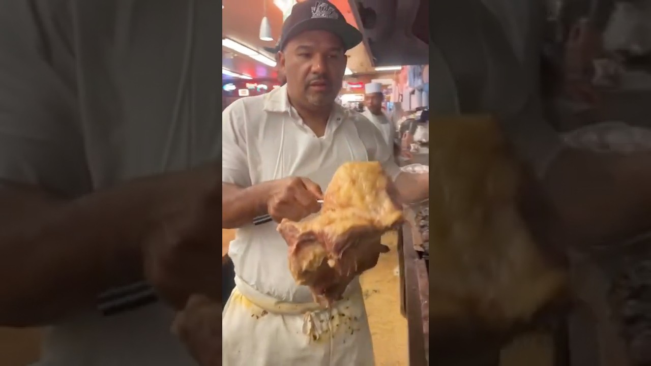 My brother, enjoy. Okay, take care. [Applause] [Music] Half pastrami mustard, half corn beef Russian dressing. Which side do you like better? Pashrami the
