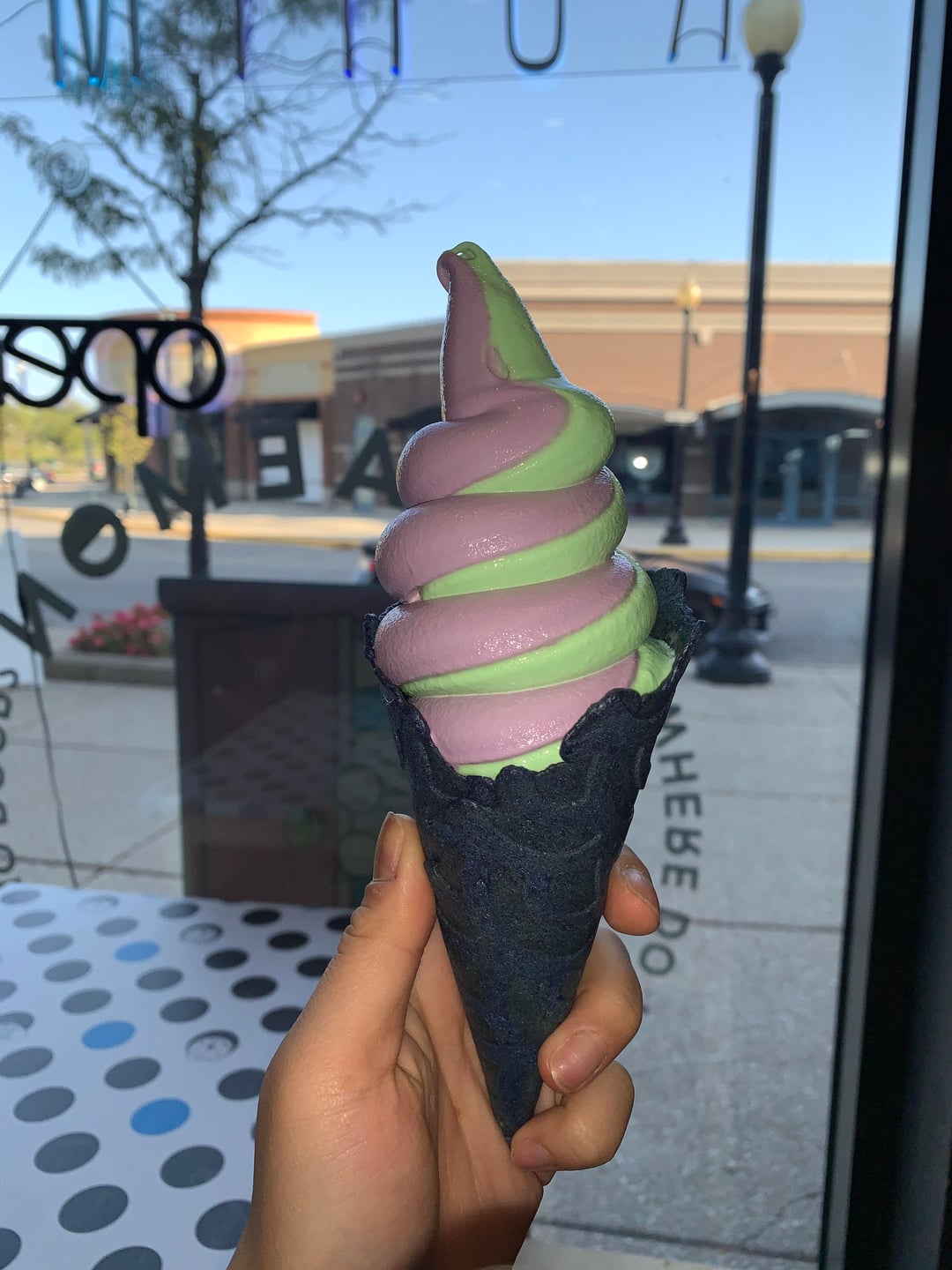 Taro and pandas ice cream with a blue corn cone, coconut picky, 85 degrees cafe goods, Korean rice cakes, Minecraft Oreos and unique Kit Kats . Bonus: cyute poster of the Asian snack place I went to. by YeosSweetSoyMilk Dining and Cooking