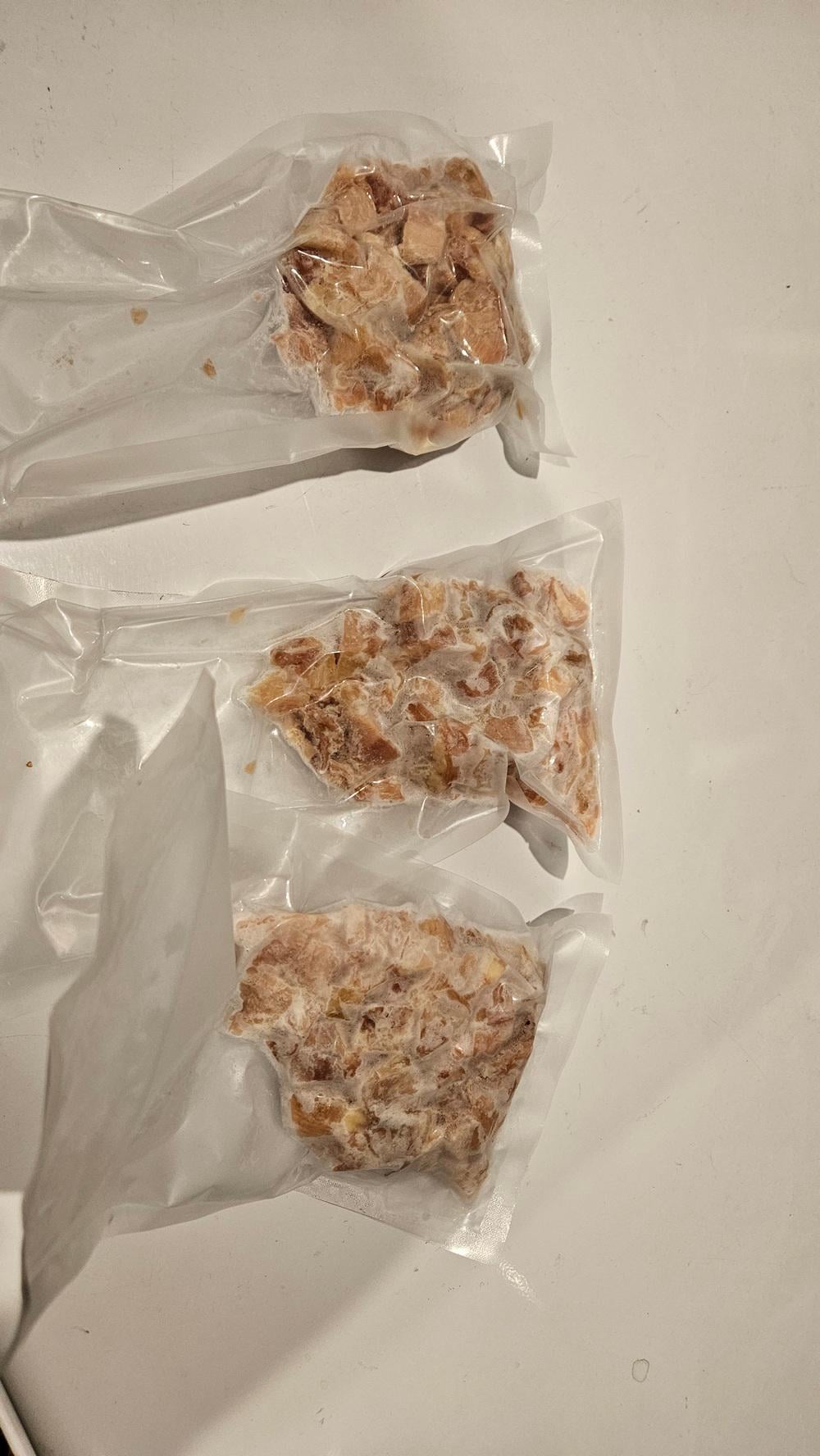 While I am a serious sous vide fanatic and also get the value of the sealed portions, I gotta say sous vide really feels like a lot of work here, you can just braise a large amount of chicken or ground turkey, beef in a small amount of water, chop and and bag it up. We make ours a week at a time, put in a storage pyrex, add a modest amount to their dry kibble. It’s about one Costco chicken thighs or ground beef/turkey, in about 15-20min. I am fairly confident they will be just as happy and it will take a fraction of the time. It is funny to watch how quickly they figured out which pan and cook in the kitchen was “for them”!