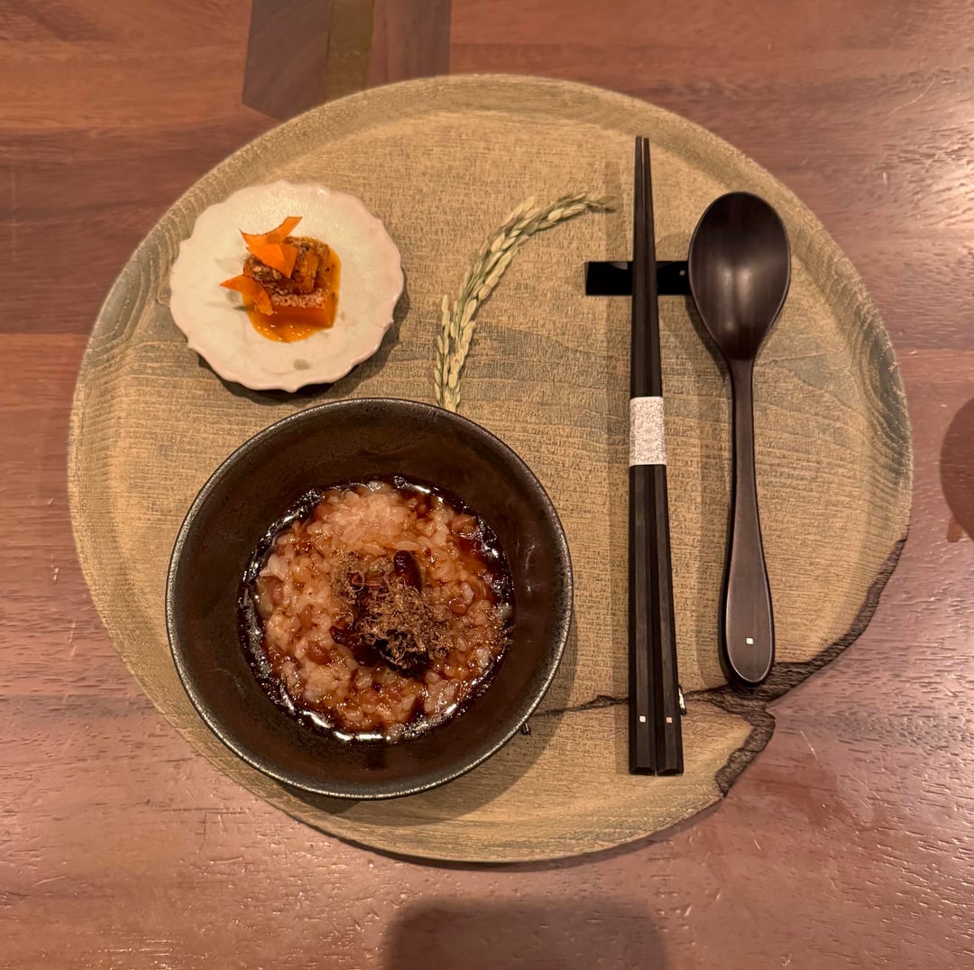 - Caramelized Mugi Shime – Our entire group agreed that this was the best course of the night, which was unfortunate because we were all too full at this point to enjoy it fully. This was the "Ratatouille" moment – comforting, well-balanced flavors that felt familiar & fresh at the same time. This was basically an umami-rich Japanese risotto.