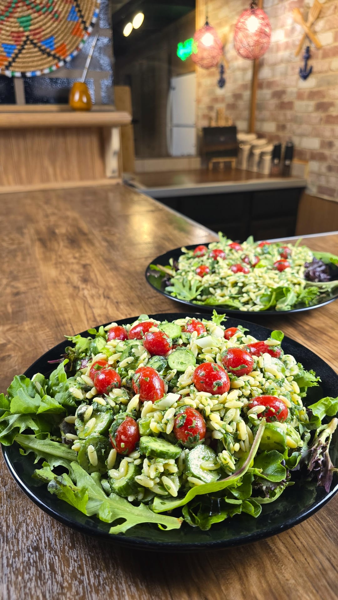 - Plate & Serve: Arrange leafy greens on a serving dish, spoon the orzo salad mixture on top, and enjoy fresh!