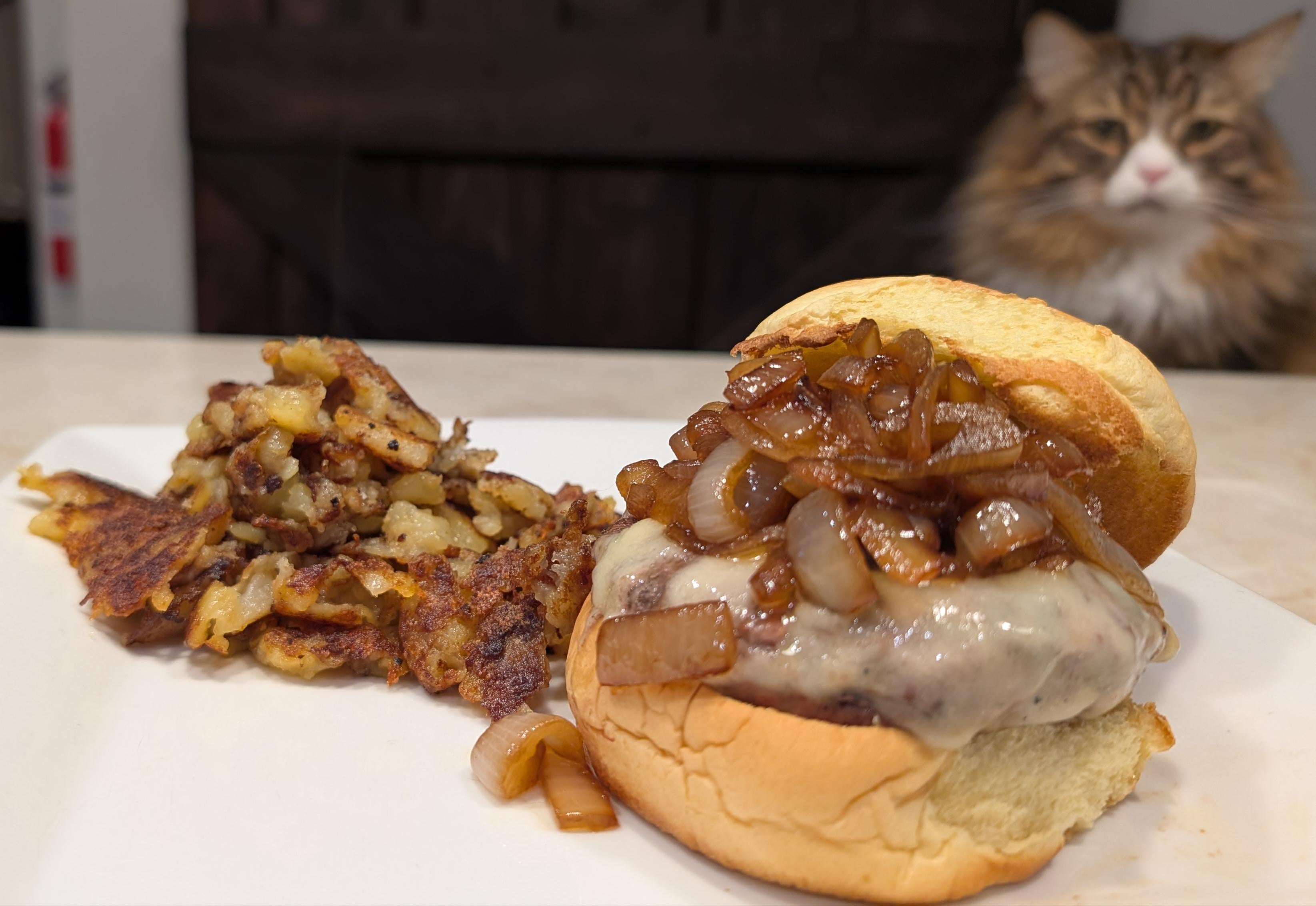 now this does look like a lovely burger but im guessing most comments are going to be asking “what’s your cats name” 😀