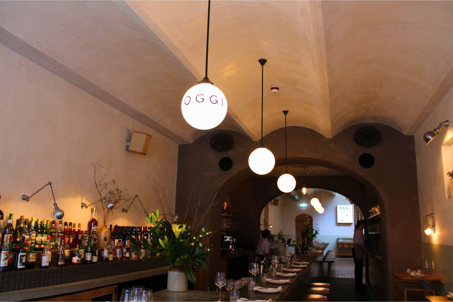 Just one globe has the ‘OGGI’ name on it in the entire restaurant. Photo: David Simmons/CityMag