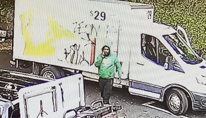The Home Depot truck they were driving had “ZEON” graffiti written on it. The driver walked to where the cooking oil is kept and then returned to the truck and drove away.
