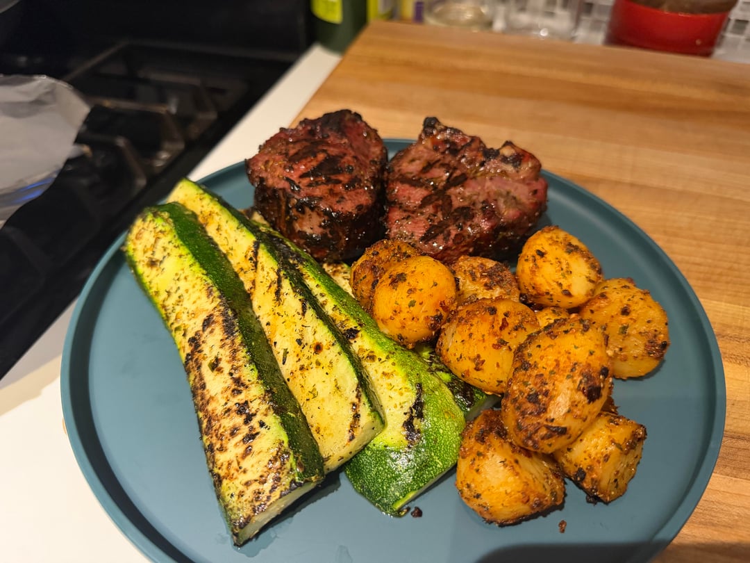 Montreal seasoning with some rosemary and grilled zucchini with potatoes. by Almostmadeit 3 Comments doom-on-you-all 16 hours ago Looks good , show us a money shot next time ! Interesting-Role-596 16 hours ago Grilled zucchini is the best! imthefakeagent 15 hours ago Are those the Costco chops? They thicc