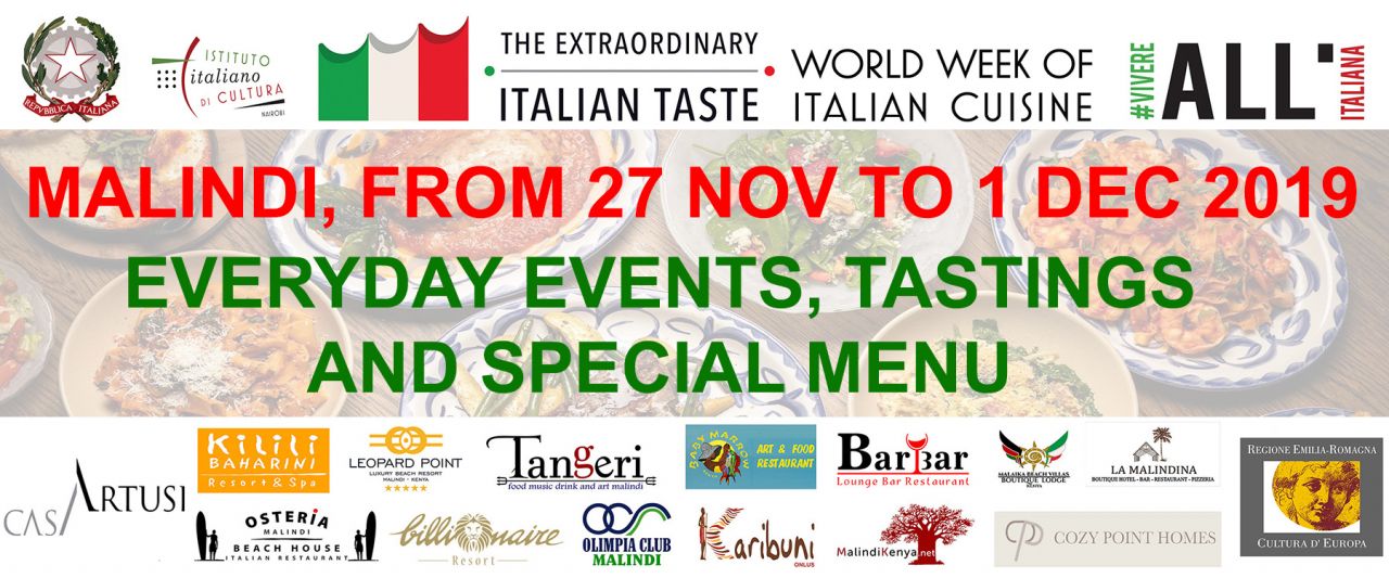 Countdown to the international week of Italian cuisine in the world, the World Week of Italian Cousine, an initiative of our Ministry of Foreign Affairs and addressed to Malindi thanks to the Ambassador of Italy in Kenya Alberto Pieri and the availability of restaurateurs and partners involved. The important event that proposes the best that the tourist destination can offer in terms of gastronomy, trade, services and entertainment opens on Wednesday, November 27 and every day, at lunchtime dinner and at aperitif time, a restaurant in Malindi will have something more to offer than usual and will be something Italian. From the opening day at the Leopard Point Beach Resort, whose Jiko restaurant combines light and healthy cuisine with an elegant atmosphere of relaxation between the Marine Park and the Mayungu marine oasis, to Wednesday evening in the temple of meat and evening meeting Tangier Lounge, while Thursday afternoon will open the happy our of the Bar, with special prices for Italian wines, spritz and Italian appetizers. On the evening of the 28th, Baby Marrow offers two tasting menus and the new Freddie e Sbringo show “Spaghetti pollo e insalatina”, songs to eat and drink.
