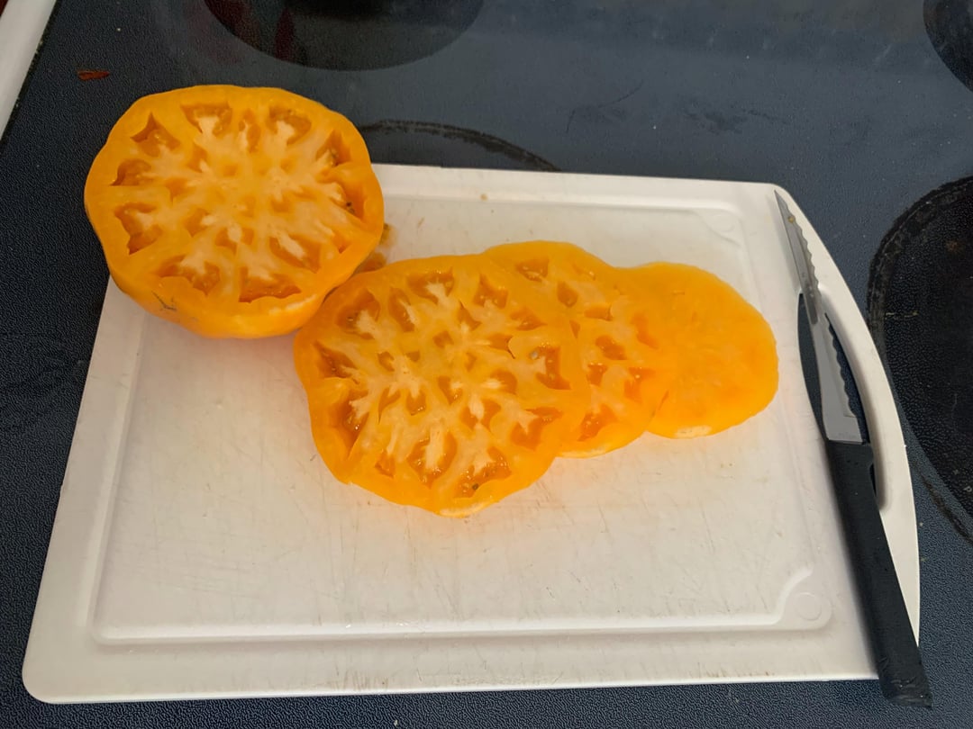 popsels 1 month ago What beautiful tomato insides—- it looks like a snowflake! Congratulations and I hope you enjoyed your tomato sandwich!!