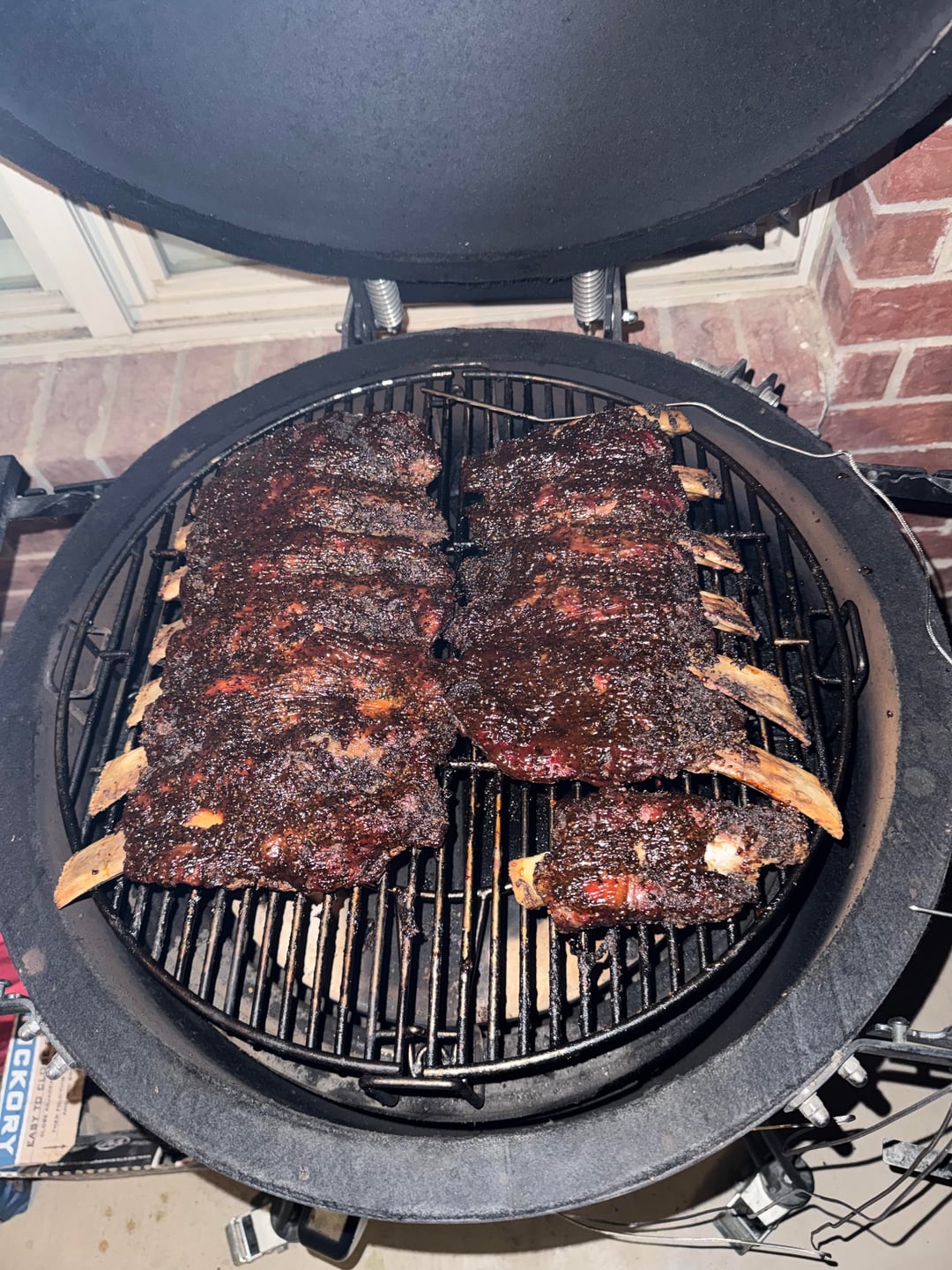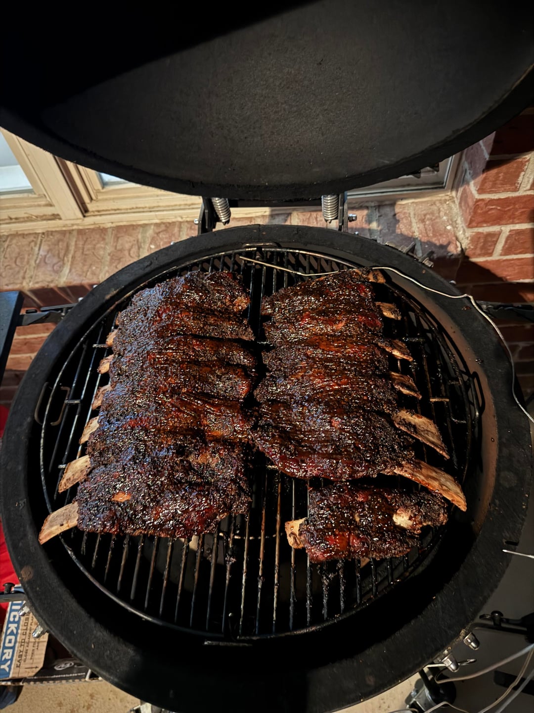 How’d I do? Sorry didn’t get a chance to take a pic of the inside. Family devoured it all. Smoked on the classic Joe 1, indirect at 230F, using the 3-2–1 method