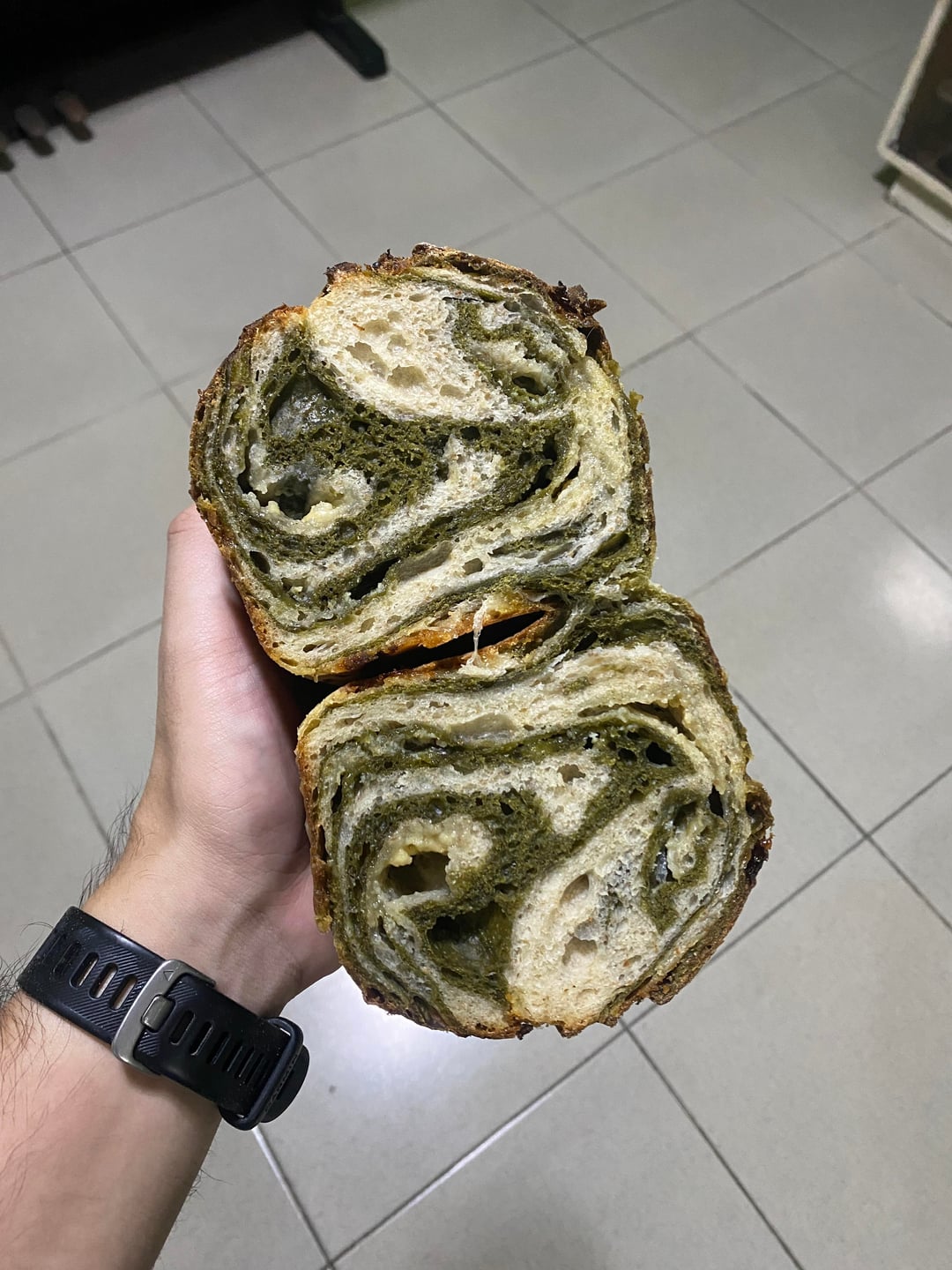 • Rest remaining bulk until each dough is airy and ~70–80% risen.Laminate & Swirl (20 minutes)