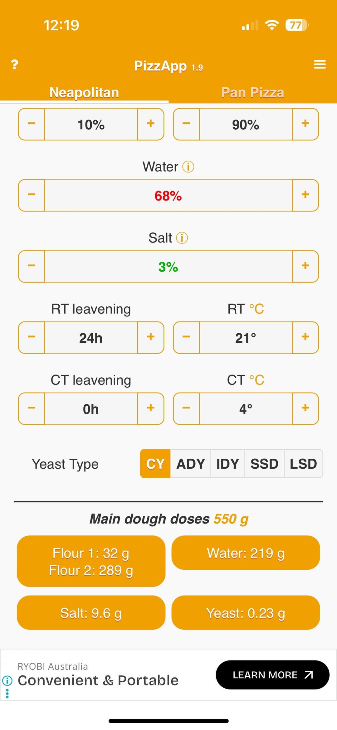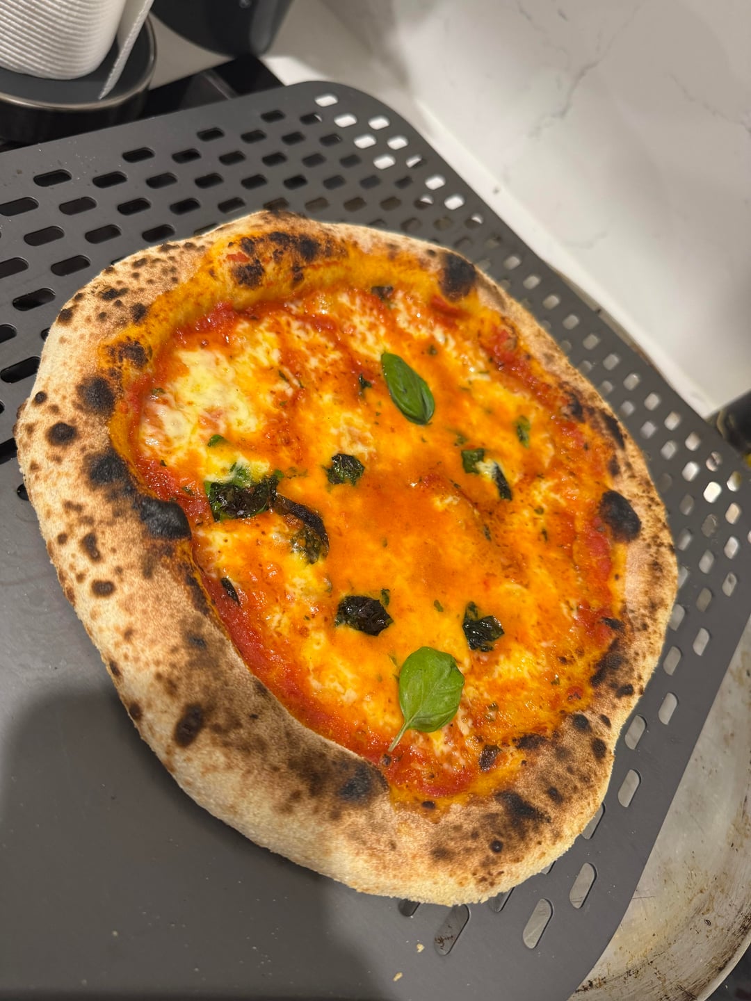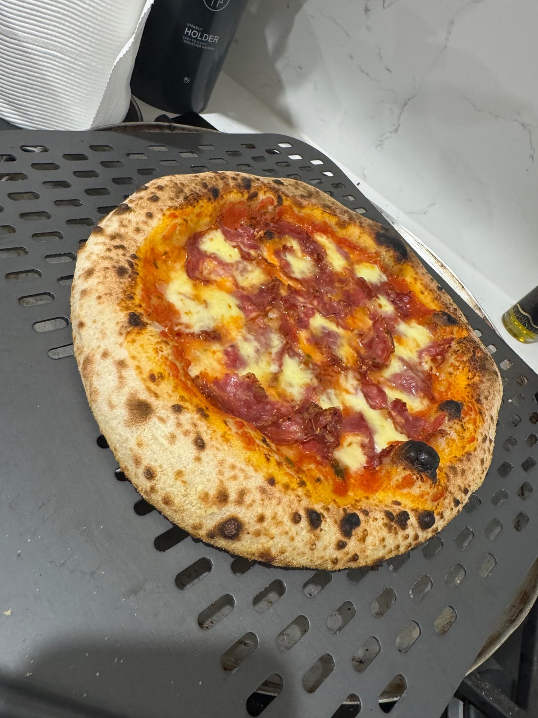 10% caputo Manitoba 90% caputo pizzeria 68% hydration is such a sweet spot 🔥by rondawg666 2 Comments manmad91 14 hours ago Looks good! What are the kneading and proofing steps you used ? How long in bulk and how long individual proofing? stv363 12 hours ago Nice work! Amazing leoparding for the karu too