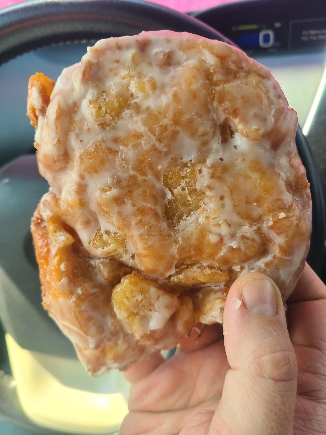Pineapple fritter – I have mixed feelings. First, it was clearly dry Pineapple, not fresh. I've noticed that Apple fritters have a sogginess to them that I assume comes from the added water in the apples. These did not have added water from the dried pineapple and so didn't have that soggyness abject made an overall better doughnut, but every bite with pineapple was… you know that feeling when you're eating trail mix and get a bite of dried pineapple and wish it was a better part of the trail mix? It was like that, except more, cause the tail mix was a doughnut.
