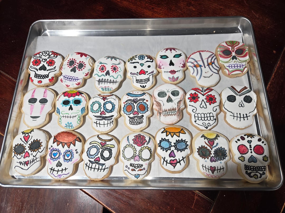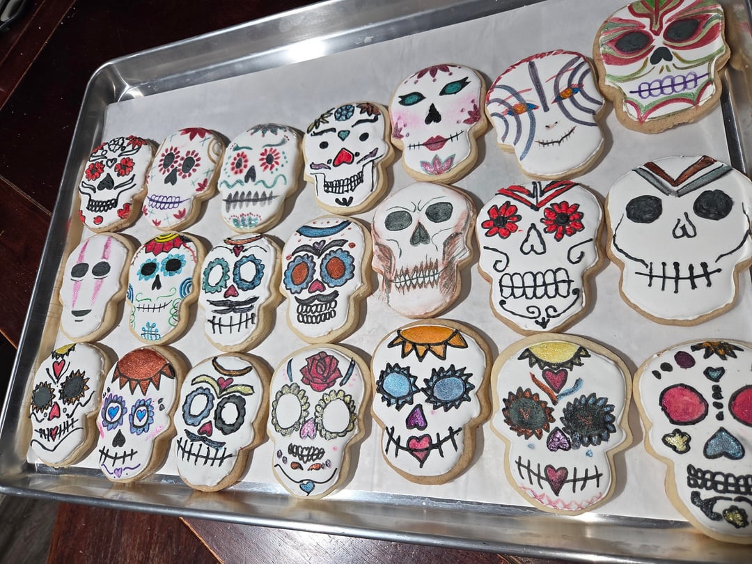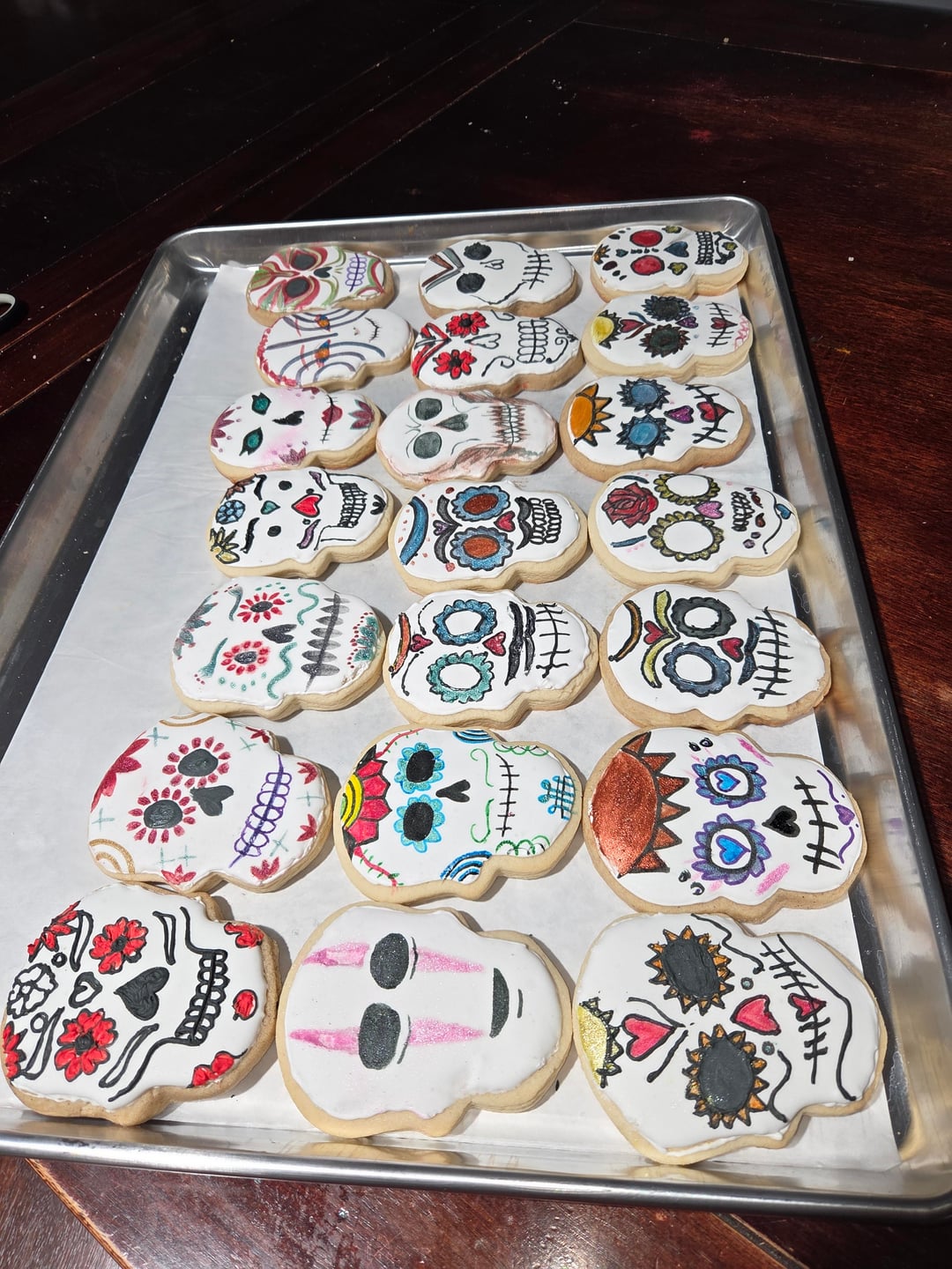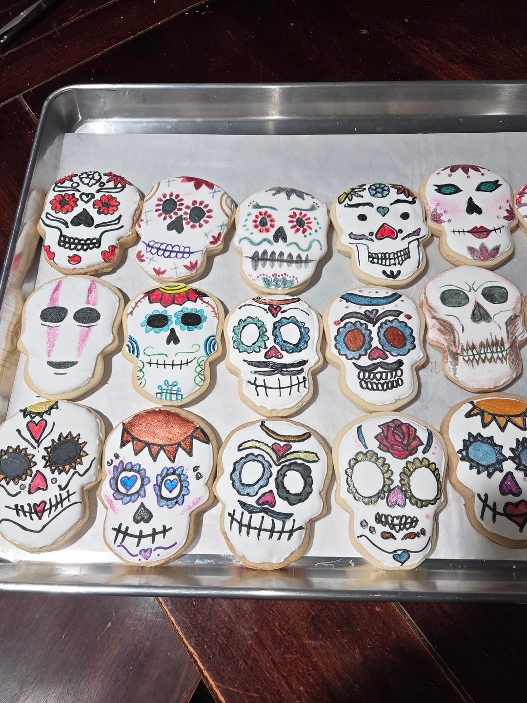 We are making one more batch with thinner black icing. Our black here was too thick and kept curling in the piping bag. We ended up painting with luster dust and edible marker.by masha_ahsam 2 Comments alanamil 10 hours ago Those are cute! Fuzzy_Welcome8348 7 hours ago These look amazing! Great job