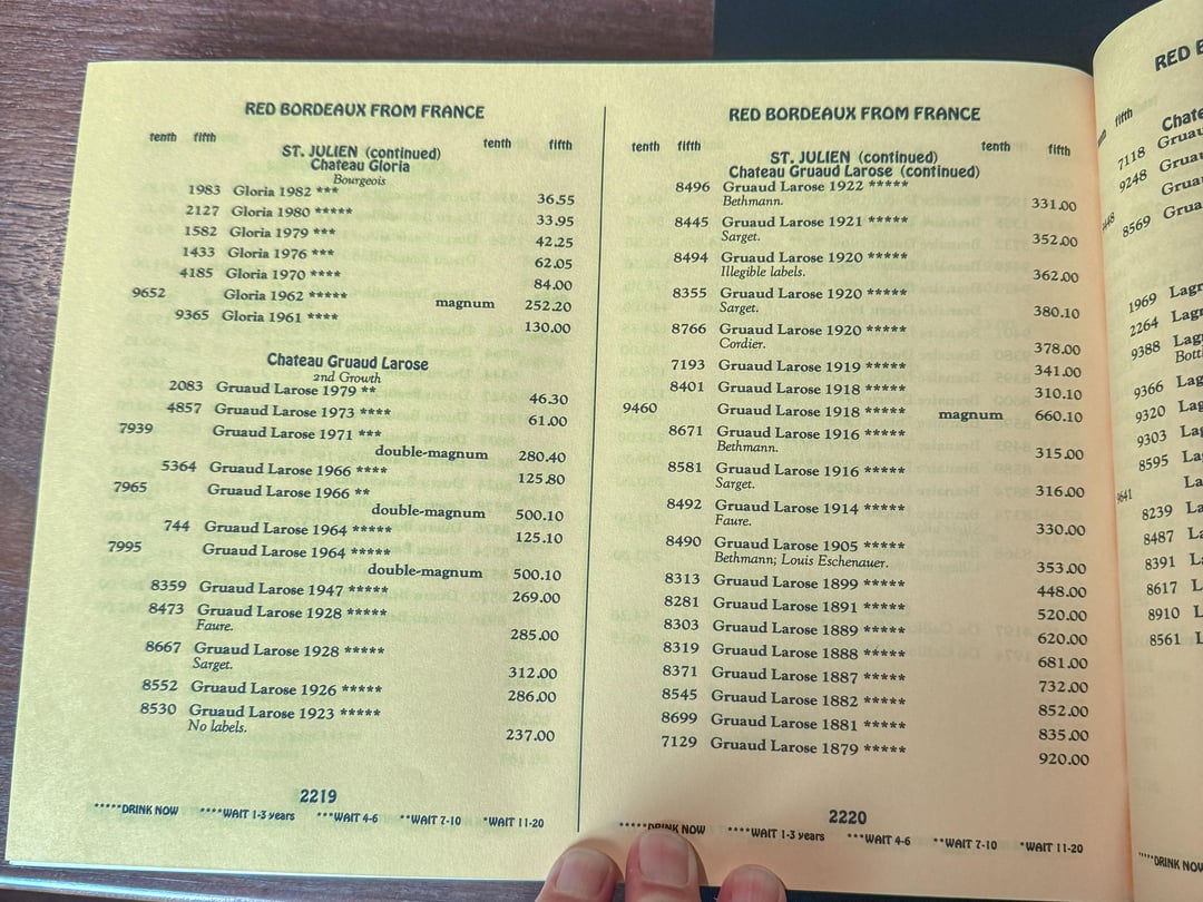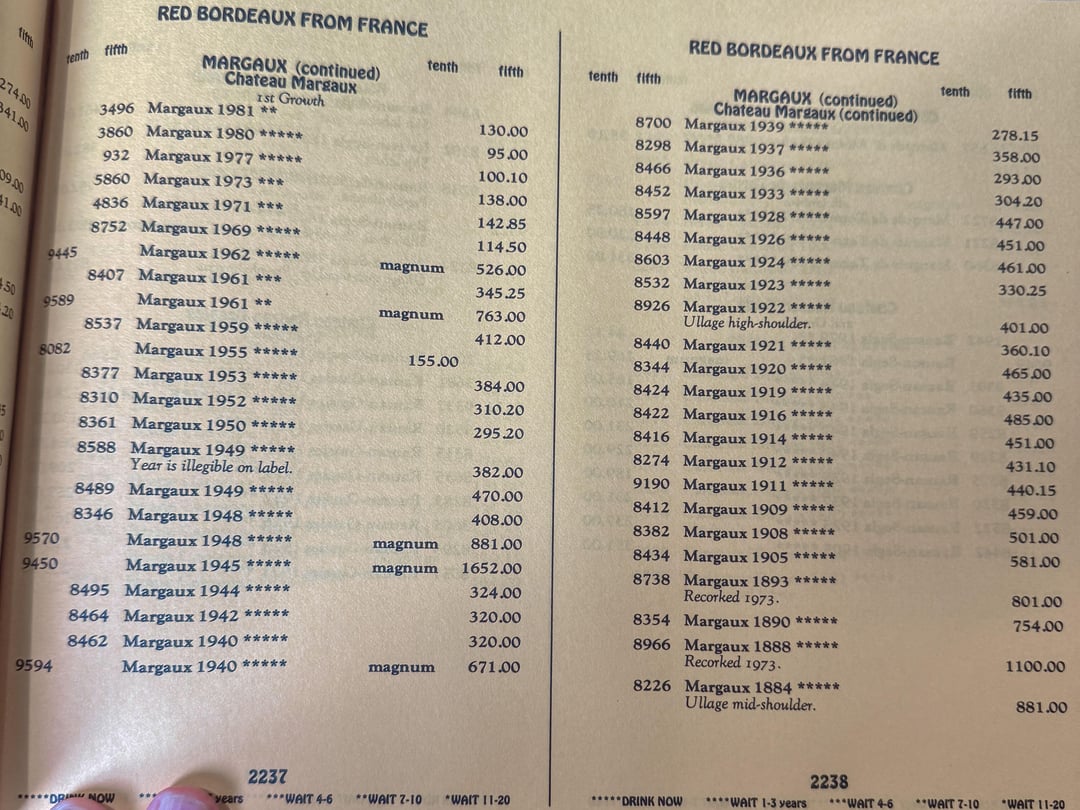 Very cool! Interesting how the prices on lower end stuff are pretty humdrum, like equiv of a couple hundred bucks for mid 00s Gloria is not anything I’d fall over for. Prices on higher end stuff of course are unthinkable today. Wine market has gotten weird. (And part of that is that Gloria and its ilk are substantially cheaper in inflation adjusted terms than they were in the 80s!)