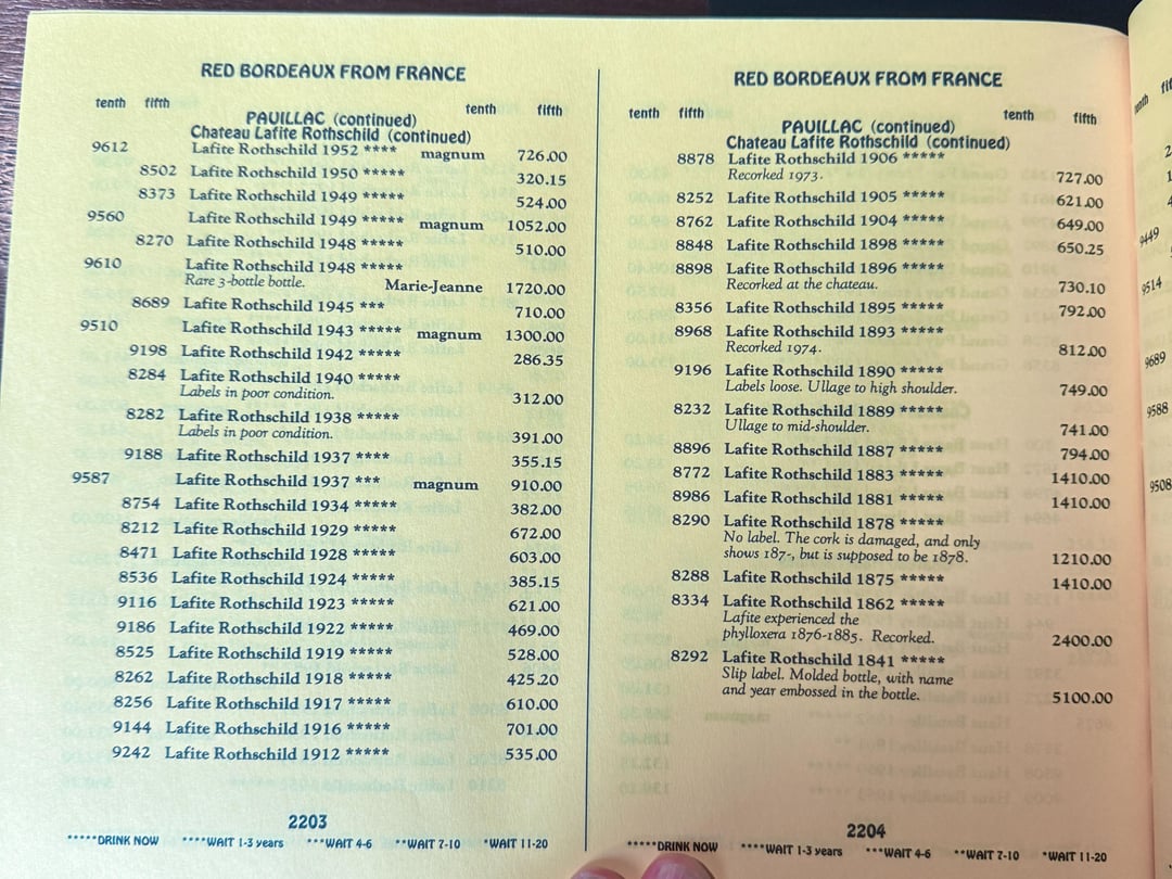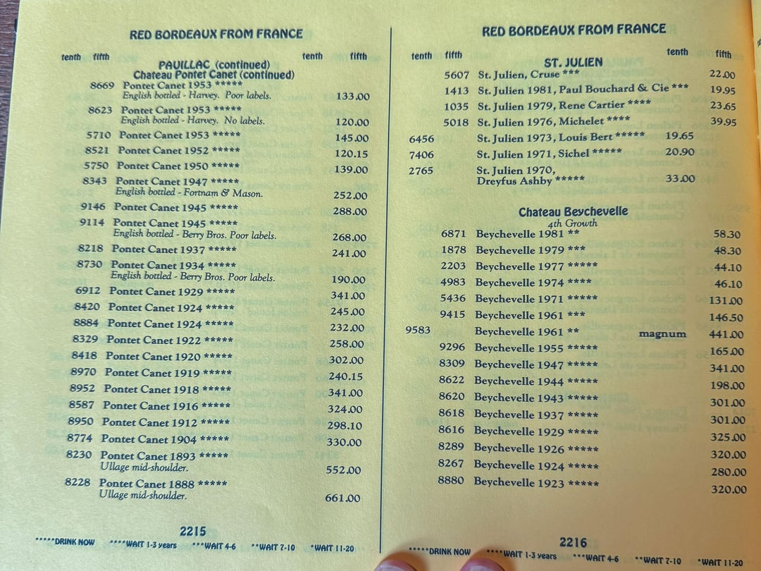 holy eff…. 1st growth Bdx estates before WW1!!! This reads more like a Christie’s auction catalog than a Tampa restaurant wine list. Does anyone know how they could collect this kind of cellar? Is the restaurant a private club for Vanderbilts or DuPont’s or other hundred millionaires?