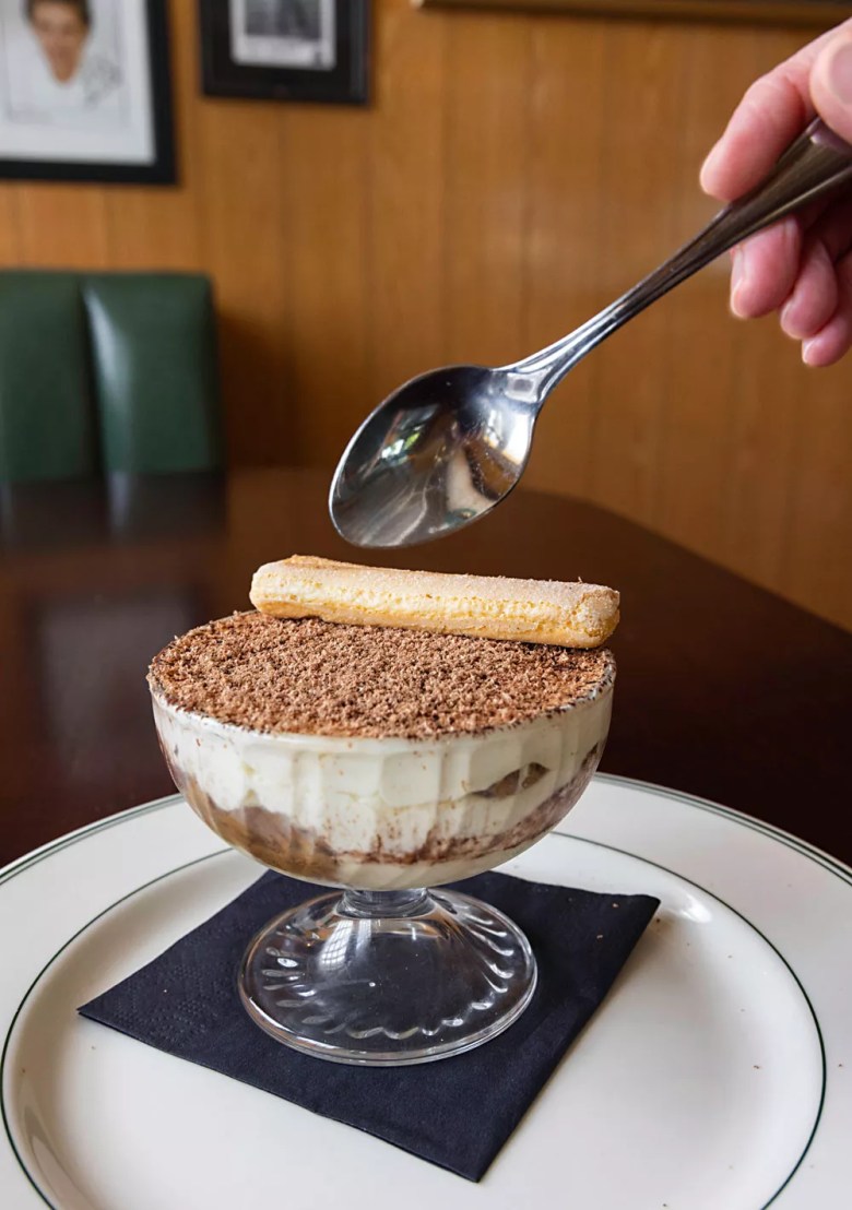 The dessert menu is exactly what I’d expect from an Italian American restaurant: tiramisu, panna cotta, chocolate cake, and New York-style cheesecake. But I’ll admit to being surprised by the high quality of both desserts I ordered. Tiramisu comes in a large dessert bowl, so it’s easy to share, and delivers a powerful espresso flavor that’s well balanced by mascarpone’s delicate funk. I’ll also admit to being something of a cheesecake skeptic; I’ve just had too many dense and stomach-burdening versions in the past. Fortunately, Cousin Louie’s’ cheesecake proves thick but fluffy, with a bright raspberry sauce and a snappy gingersnap crust.