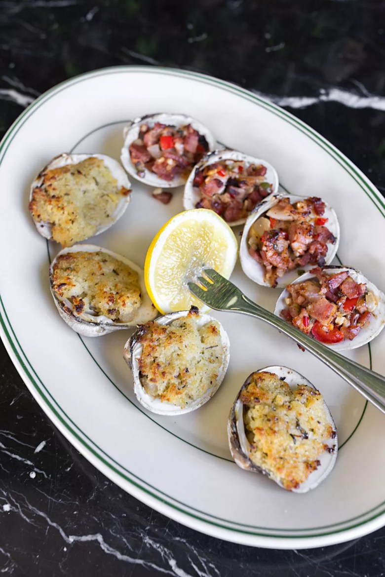 The restaurant serves baked clams in two styles: clams casino, with bacon, breadcrumbs, green pepper, and garlic; and clams oreganata, with white wine, garlic, breadcrumbs, and oregano. The clams casino bursts with bacon, and the grassy green peppers provide some vegetal contrast. As for the oreganata, the oregano shines bright, and the soft and light texture is appealing. But if you’re looking for bold clam flavor in either version, you’ll be disappointed.
