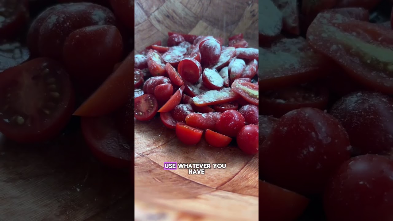 had this piece of bread sitting on the counter for days waiting for it to get super stale so I can make panzanella salad tuskin bread salad. It’s so good. Today I’m going to just throw like whatever veggies I have on hand. The only non-negotiable with panzanella is the bread. It has to be super stale or completely dried out in the oven. Other than that, have some fun. Use whatever you have on hand. Go in very lightly with the wet ingredients. Just a little olive oil, balsamic, and red wine vinegar. Freshly minced garlic is great, but today I went with garlic powder, salt, and pepper. Threw in some fresh basil with my tomatoes and cucumbers, and that was it. All the details you need are in the caption.
