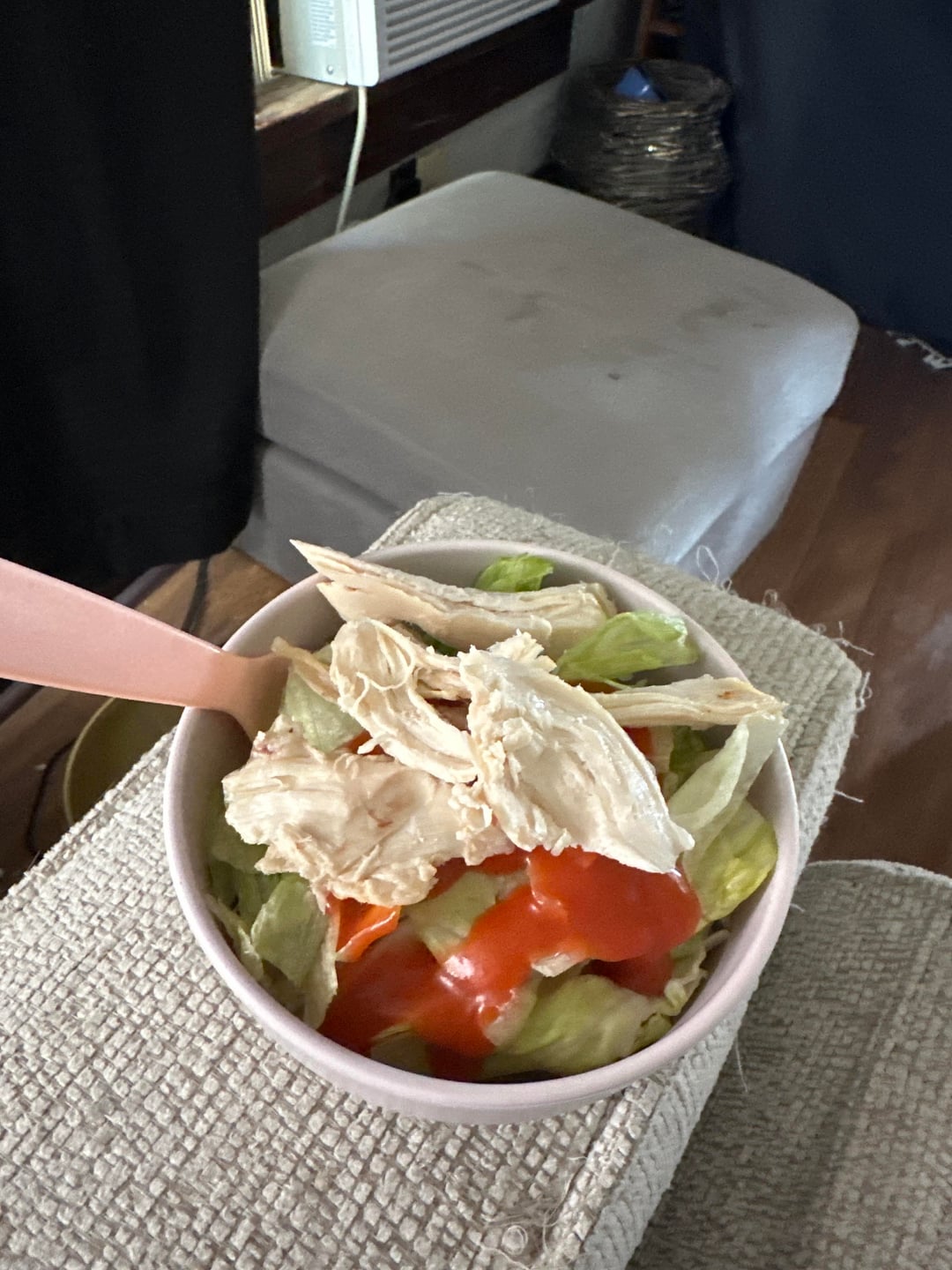 Skinless unseasoned rotisserie chicken breast 57g; Kraft classic Catalina dressing 14g