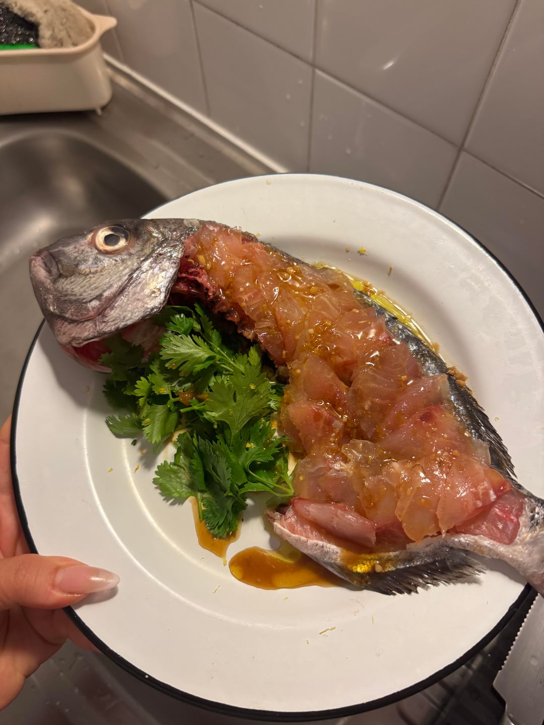 That fish sure liked cilantro.