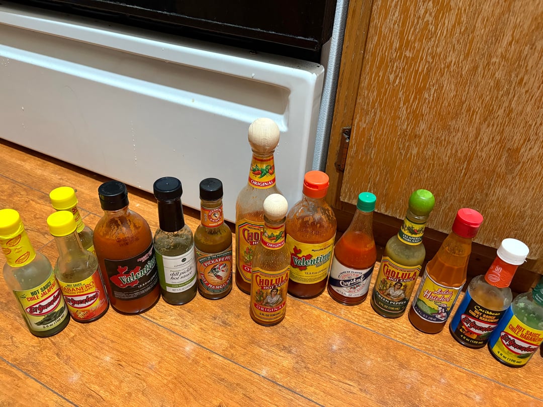 The hottest sauce here is black label Valentina. Pretty mild collection.
