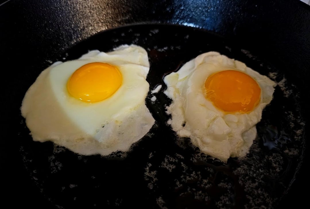 While everything cools down a bit, fry a couple eggs then enjoy!