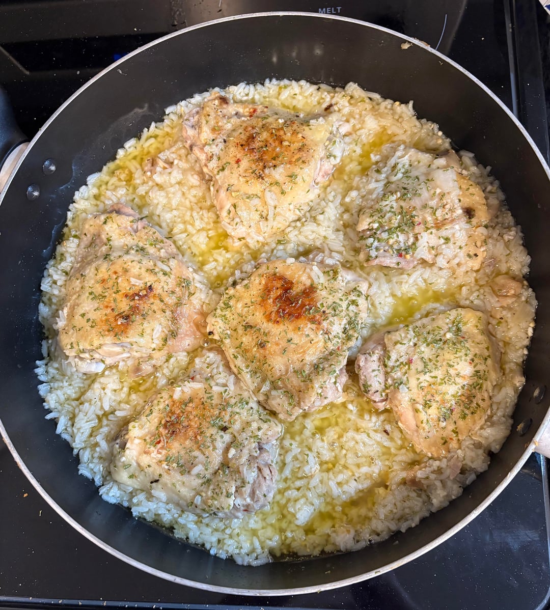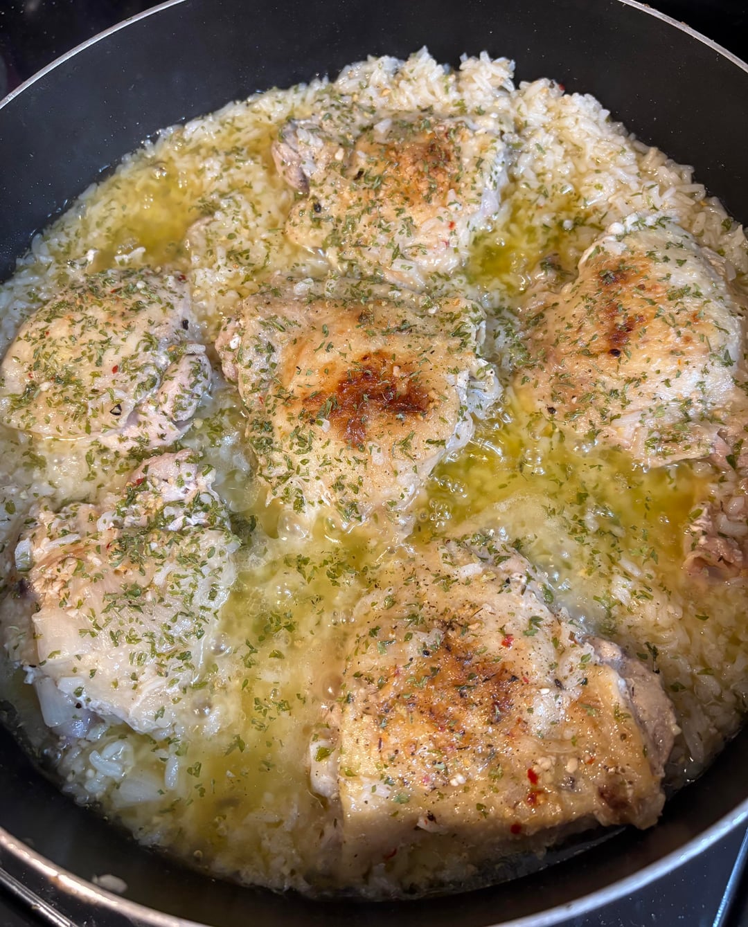 I took the thighs and browned them in olive oil. Cooked the rice in the pan according to the directions. Added parsley and shallots along with chicken broth. Covered it and cooked on the stove for 40 minutes. Very easy.