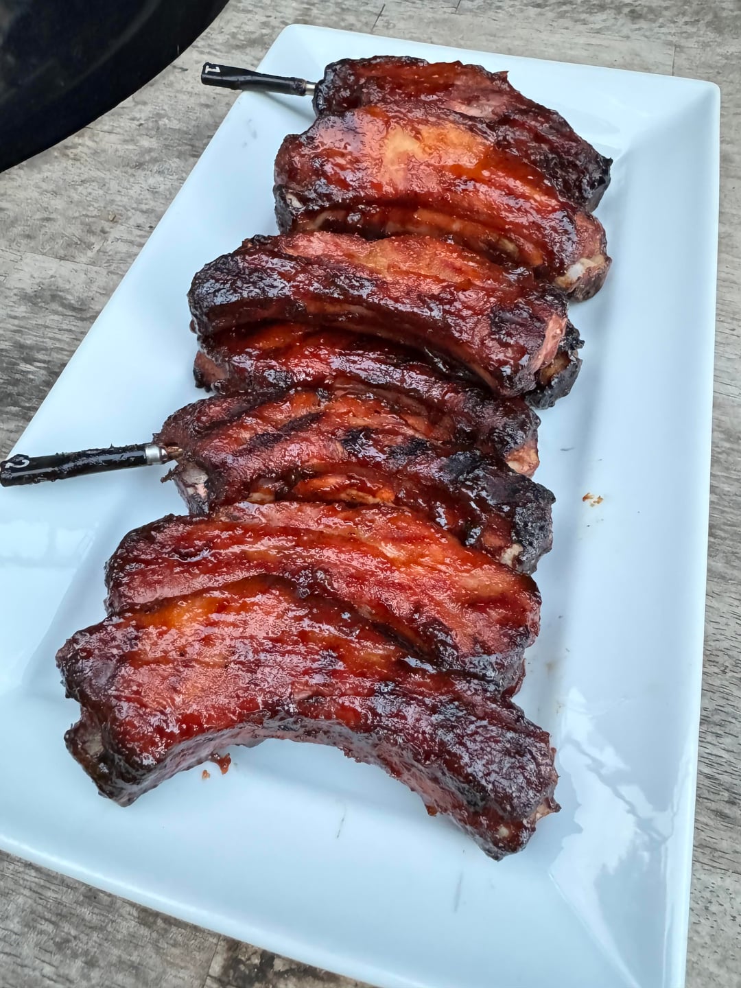 Haven’t made a rack of ribs the same way since I’ve discovered this method. Glaze the ribs with a sauce that has sugar in it and it basically caramelizes and turns to candy. If you haven’t tried them, give it a try!