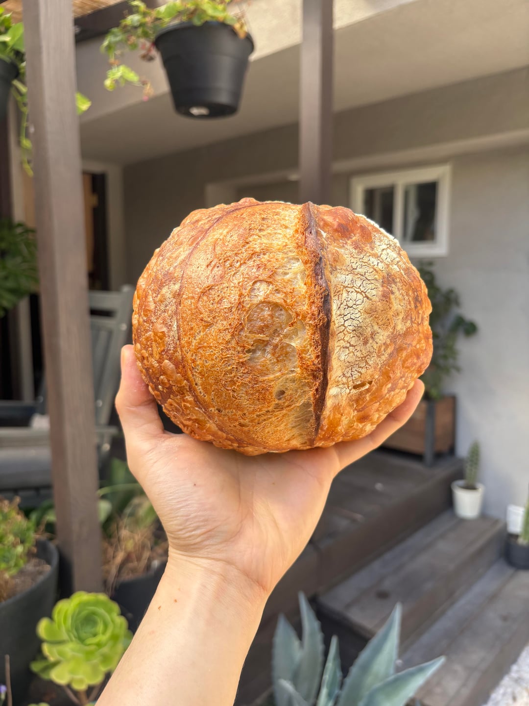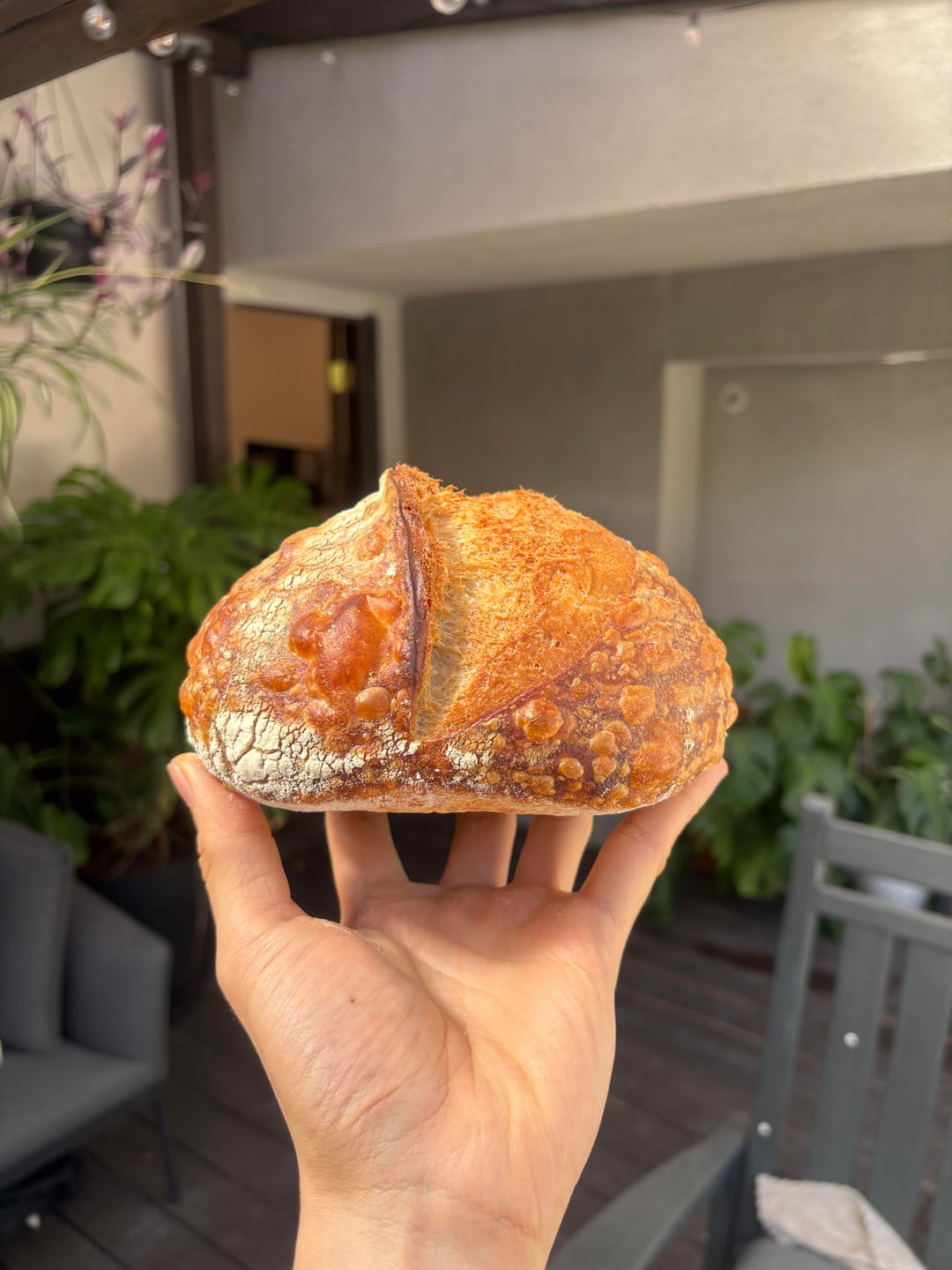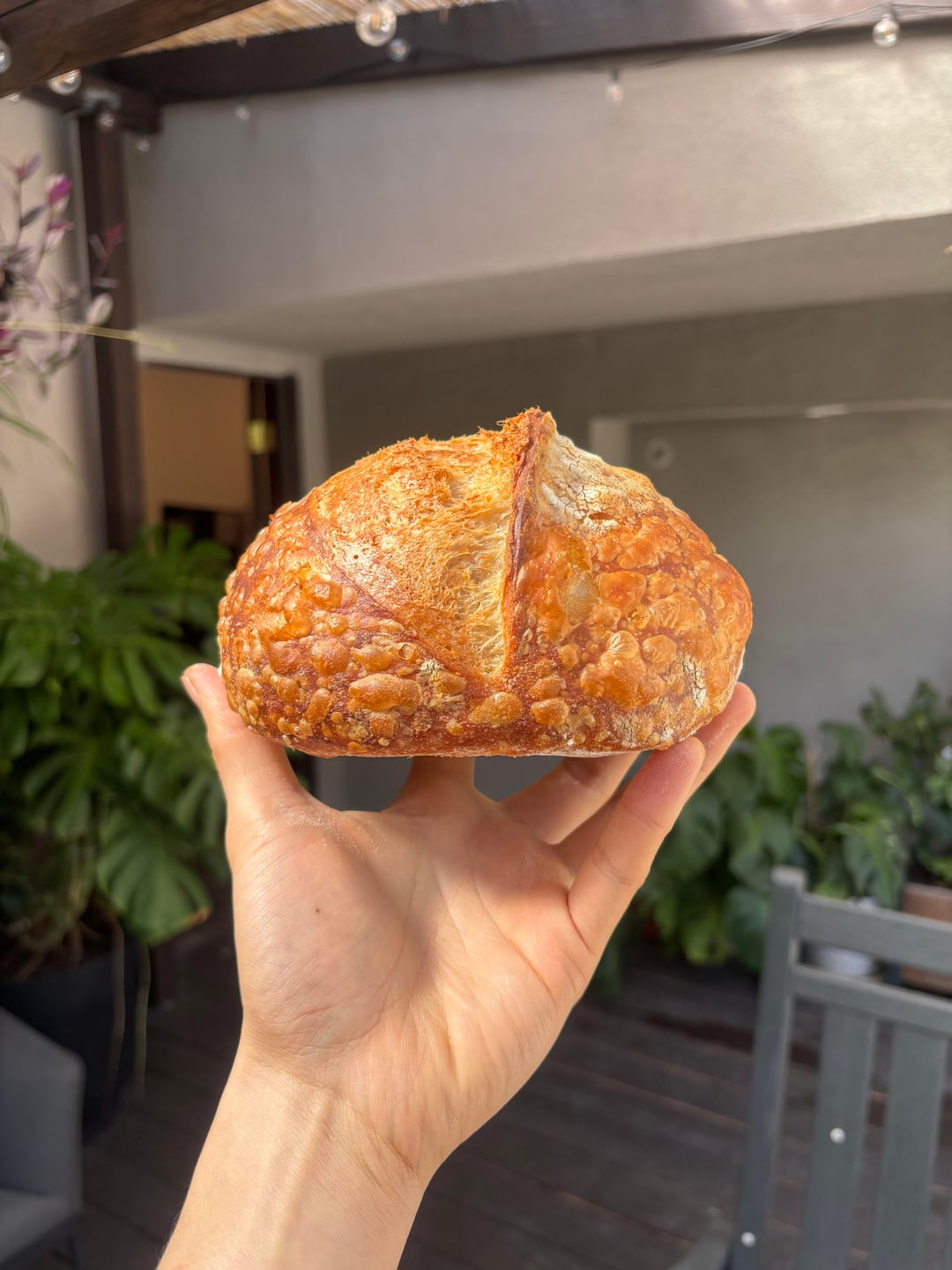 Admiring your loaf and the gorgeous plants & patio setup peeking through