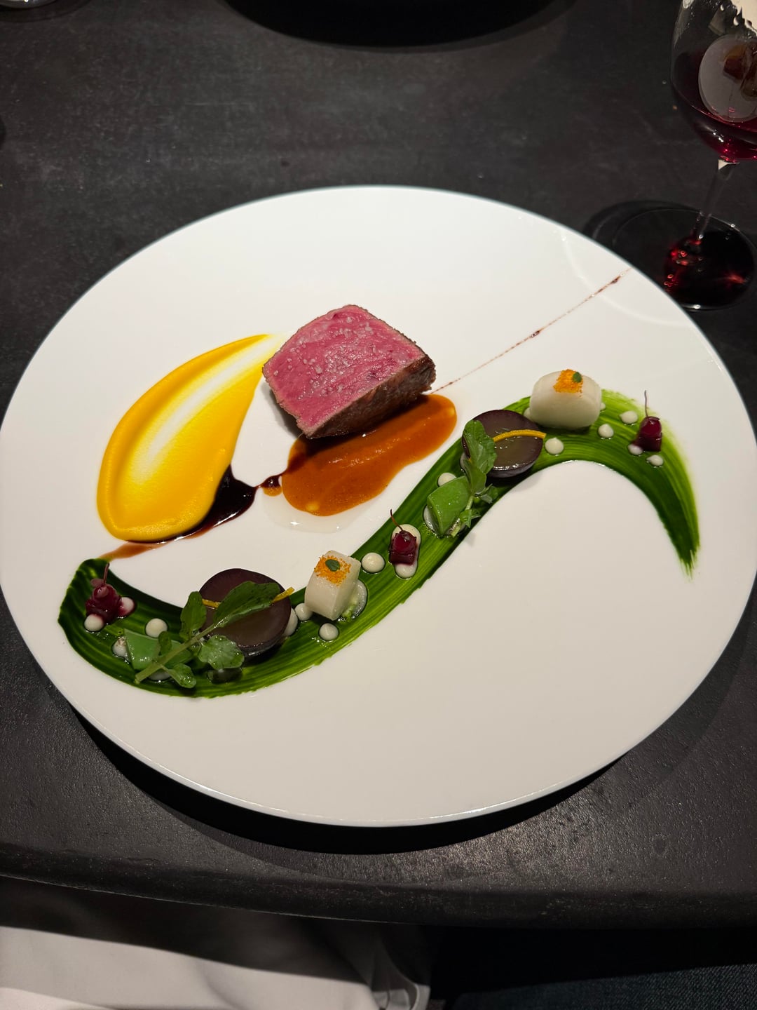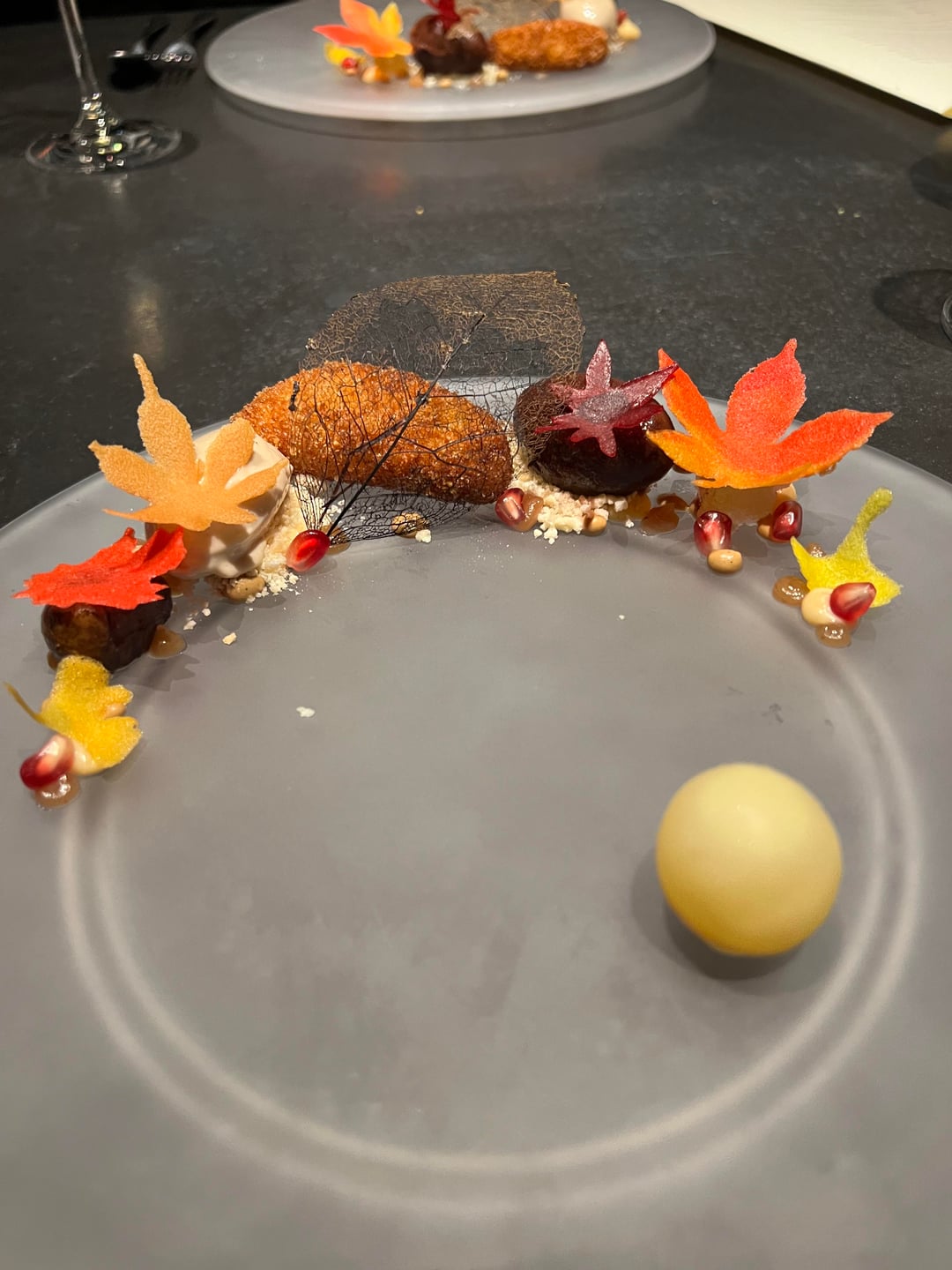 Shit! I’m missing a duck dish. There was a duck dish, and it was very good, but for some reason I (my wife) didn’t get a picture. The duck was cooked perfectly. It came out in a little jar of smoke, like those smoked cocktails and was put onto a plate with some beautifully arranged veggies.
