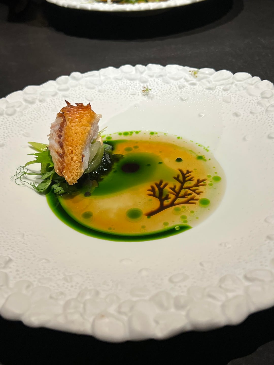- Tile fish with a dashi: perfectly cooked fish, tender with a crispy skin, the broth had the richness of a dashi along with a certain herbaceousness. Loved this dish.