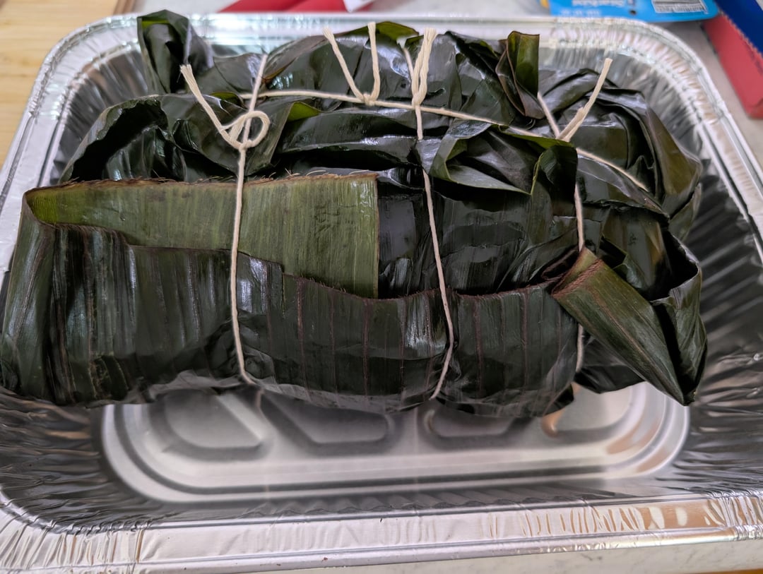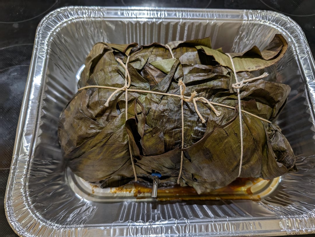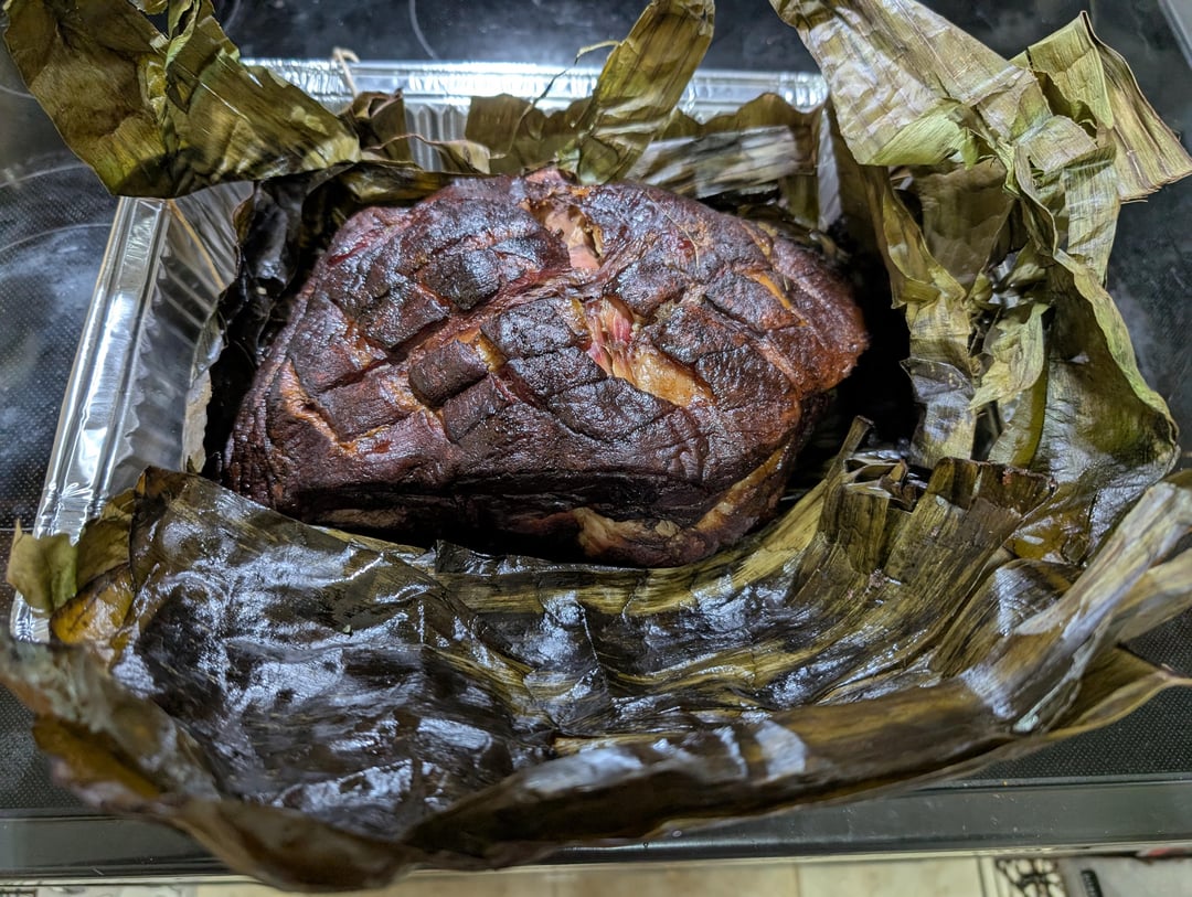 It turned out pretty amazing! The only seasoning in it was Hawaiian red salt, no dry rub or sauce whatsoever. It's flavored with the banana leaf it gets wrapped in during the smoke (I did it when it hit 165 internal). Super juicy!