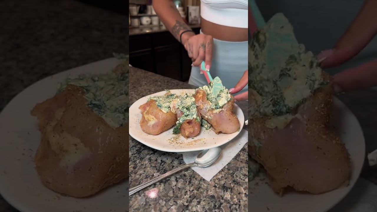 Learn how to make delicious stuffed chicken breasts filled with a creamy spinach and cheese mixture, topped with a flavorful sun-dried tomato sauce. This easy recipe is perfect for a satisfying dinner. Season your chicken breasts, stuff them with a spinach and cheese mixture. Brown your chicken on the stove top and finish in the oven. Create a sun-dried tomato sauce using heavy cream and parmesan cheese. Serve the chicken with the sauce on top.#stuffedchicken #chickenrecipe #easyrecipe #dinnerideas #spinachchicken
