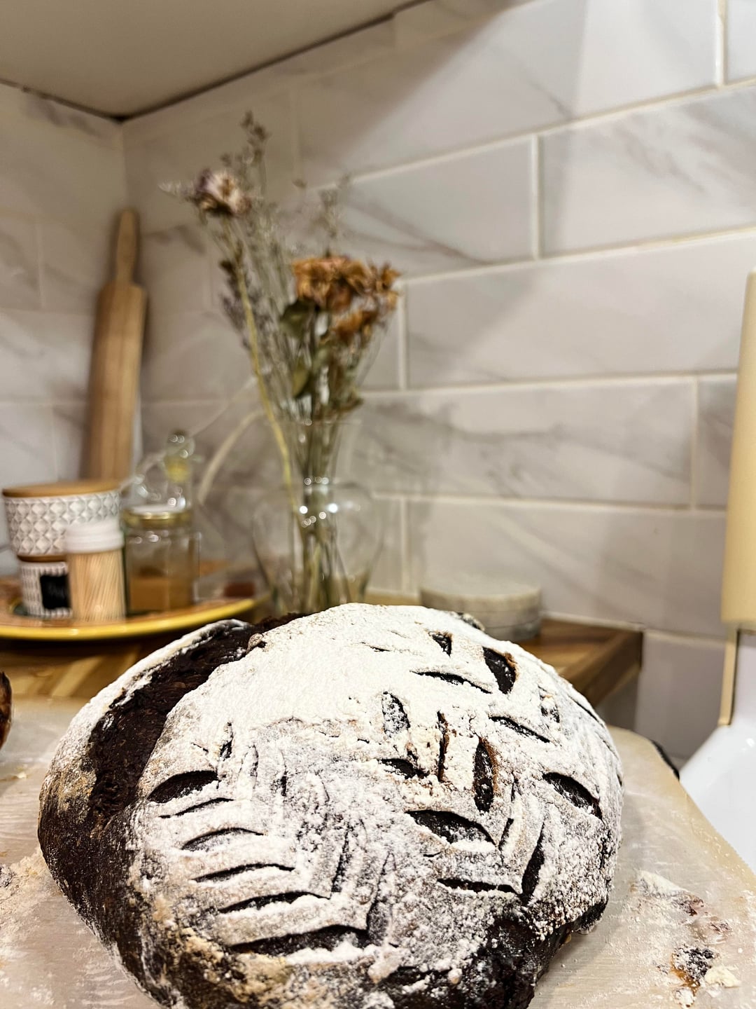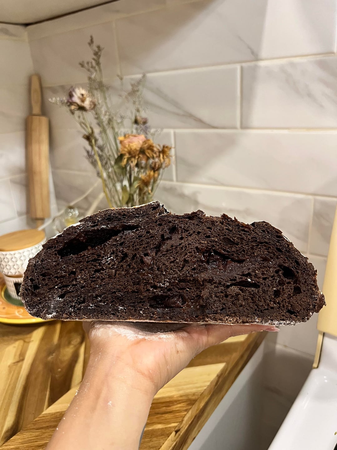 For the chocolate flavoured one it's the same steps except I only added the inclusions at the final shaping. Cocoa powder, brown sugar and espresso are added with the flour during autolyse.