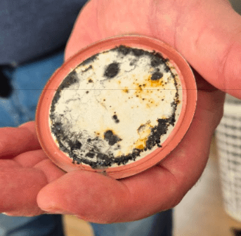 ETA: I wiped off the lids and it wasn't slimy, it was like ashy/powdery.