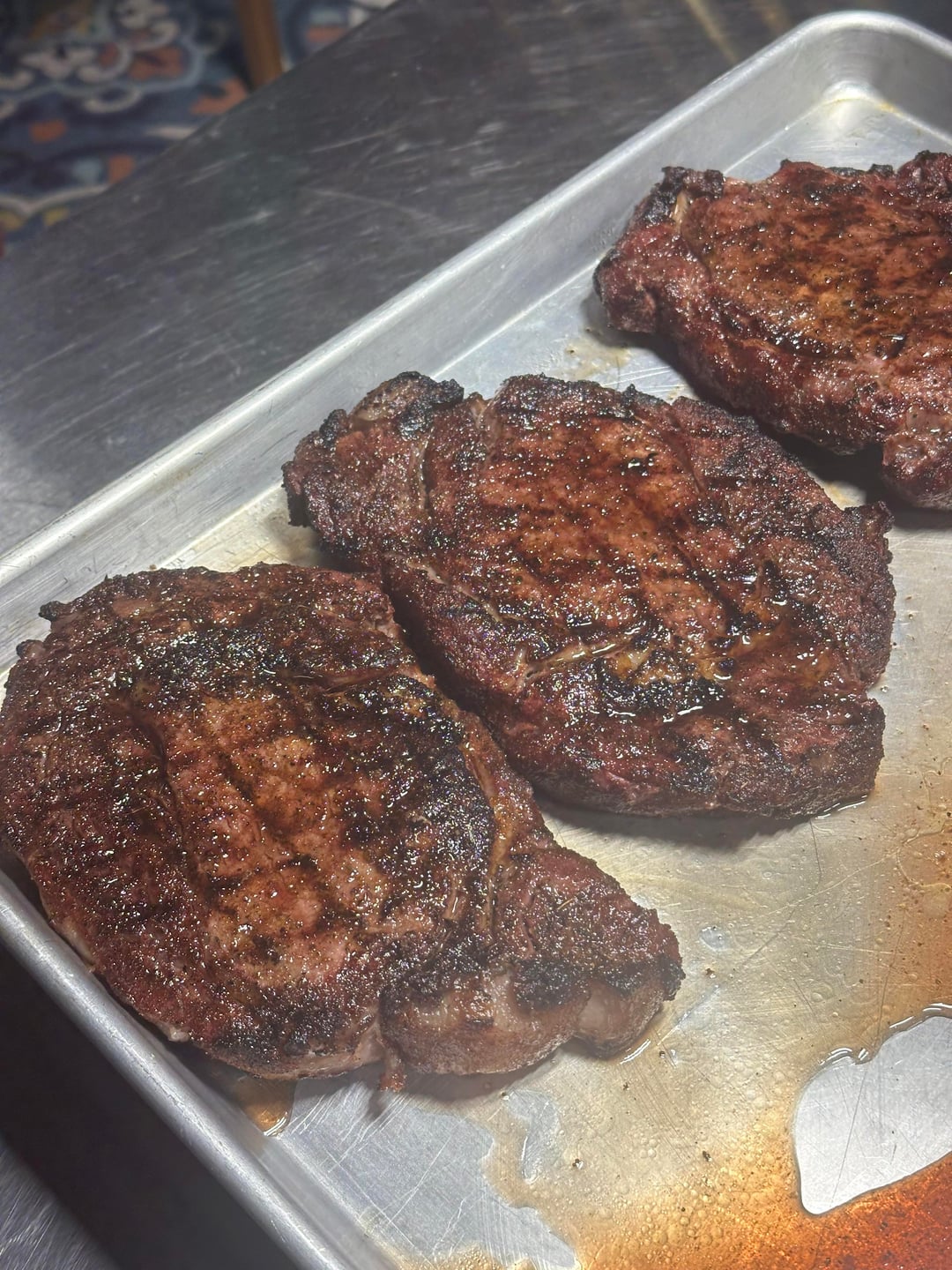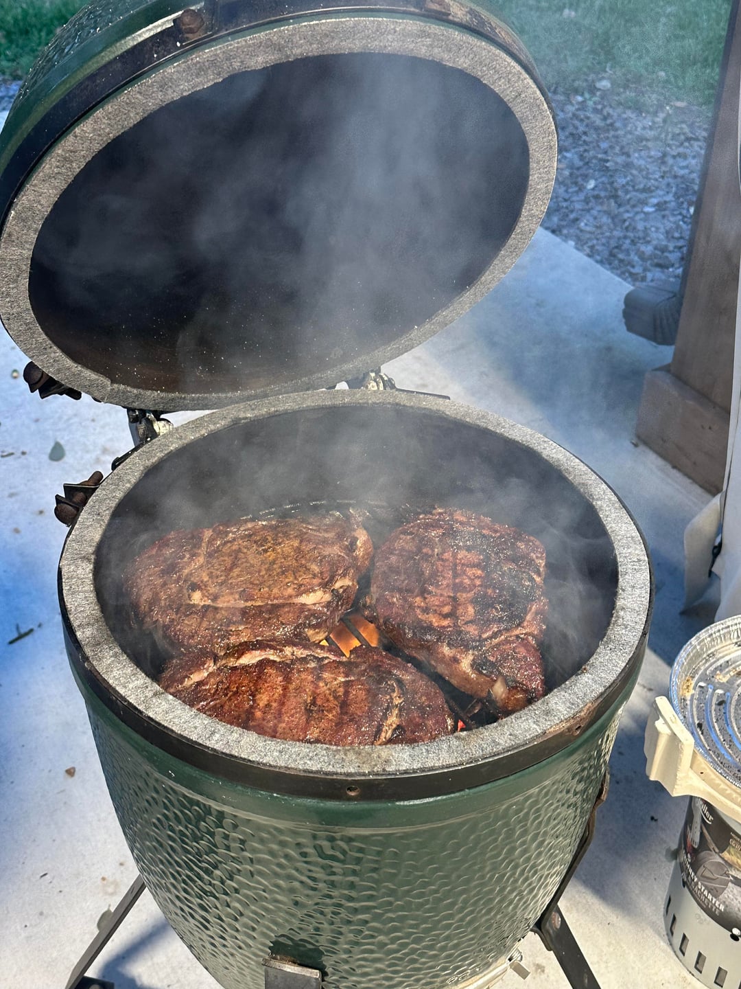 I put them on the BGE at 180Β°-200Β° until internal temp of 120Β°, I wanted 115Β° but I got busy πand bc of timing, I unintentionally had to let these guys rest for about an hour before searing them, but they still came out absolutely amazing!!!!