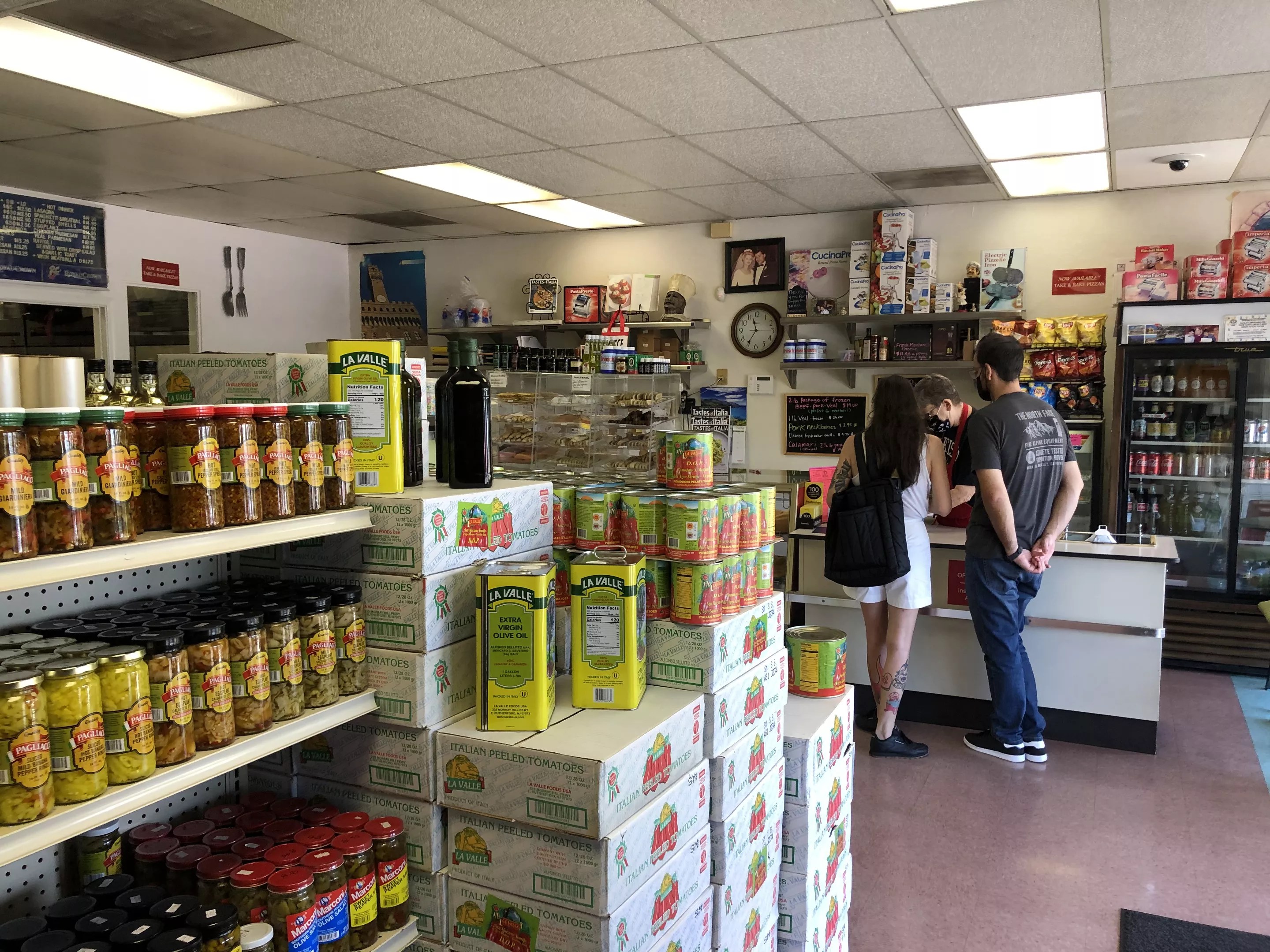 Two customers stocking up at Niccoli’s Grocery & Italian Deli