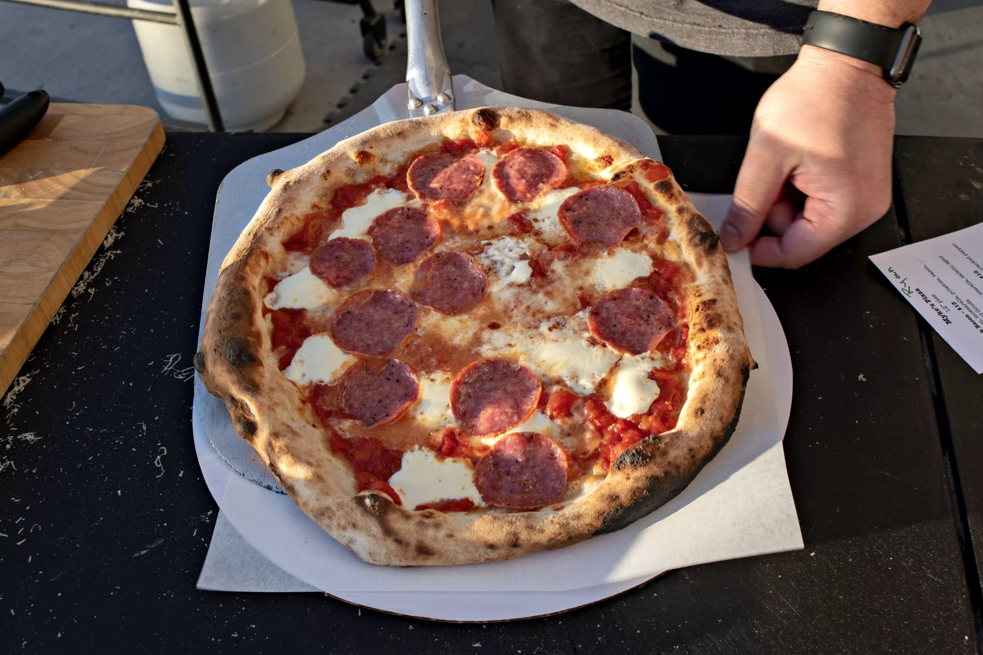 A salami pie from Myke’s Pizza fresh out of the oven.