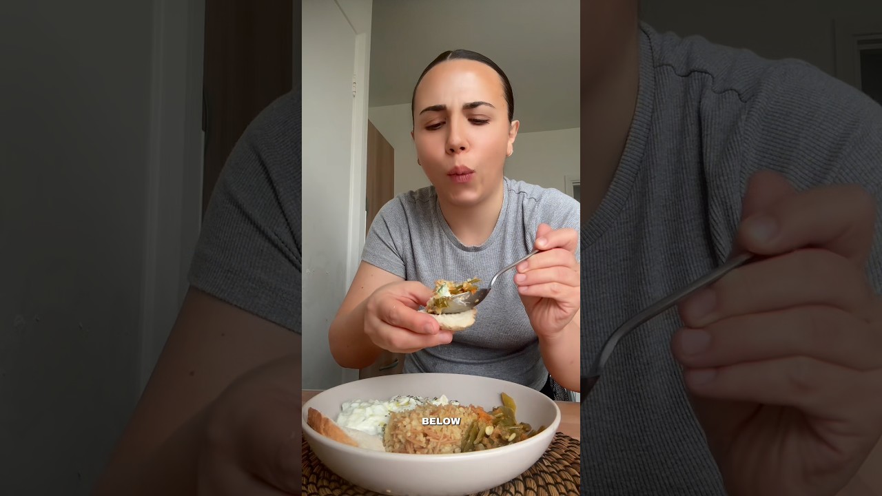 Think green beans are boring? Not like this. Onions and olive oil. Beans go in. Grated tomatoes, garlic, sugar, salt. Lid on. Low heat. While that cooks, I toast vermicelli in butter with full good. Just enough water on the side. Homemade yogurt with cucumber, garlic, mint, and olive oil. Fresh, simple, comforting, and so satisfying. Full recipe in the caption below. Don’t forget to subscribe to my channel.