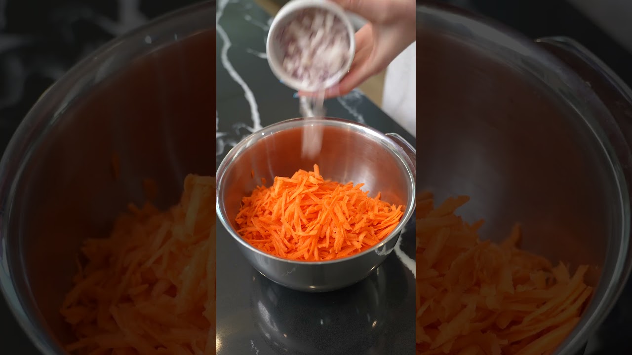 I know as a chef who is trained in French cuisine, I am biased towards French food, but I genuinely think this French carrot salad with Dijon vinegrett is the best carrot dish out there. And no cooking is even involved, which is a huge win. It combines grated carrots, minced shallots, and then golden raisins as the base. But the simple Dijon vinegrett is what makes it really shine. All you have to do is whisk together lemon juice, garlic, a lot of good Dijon mustard, honey, and good olive oil. And what’s great about it is that it holds really well. So you can like dress this and pop it in the fridge and have it for a few days. Healthy and delicious. It’s the best carrot dish.