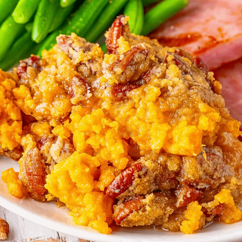 ronald-mccomb 1 month ago The topping bakes into a crunchy, nutty crust that gives way to smooth custardy center. [Here’s the full recipe](https://cookingfrog.com/sweet-potato-casserole/). Enjoy!